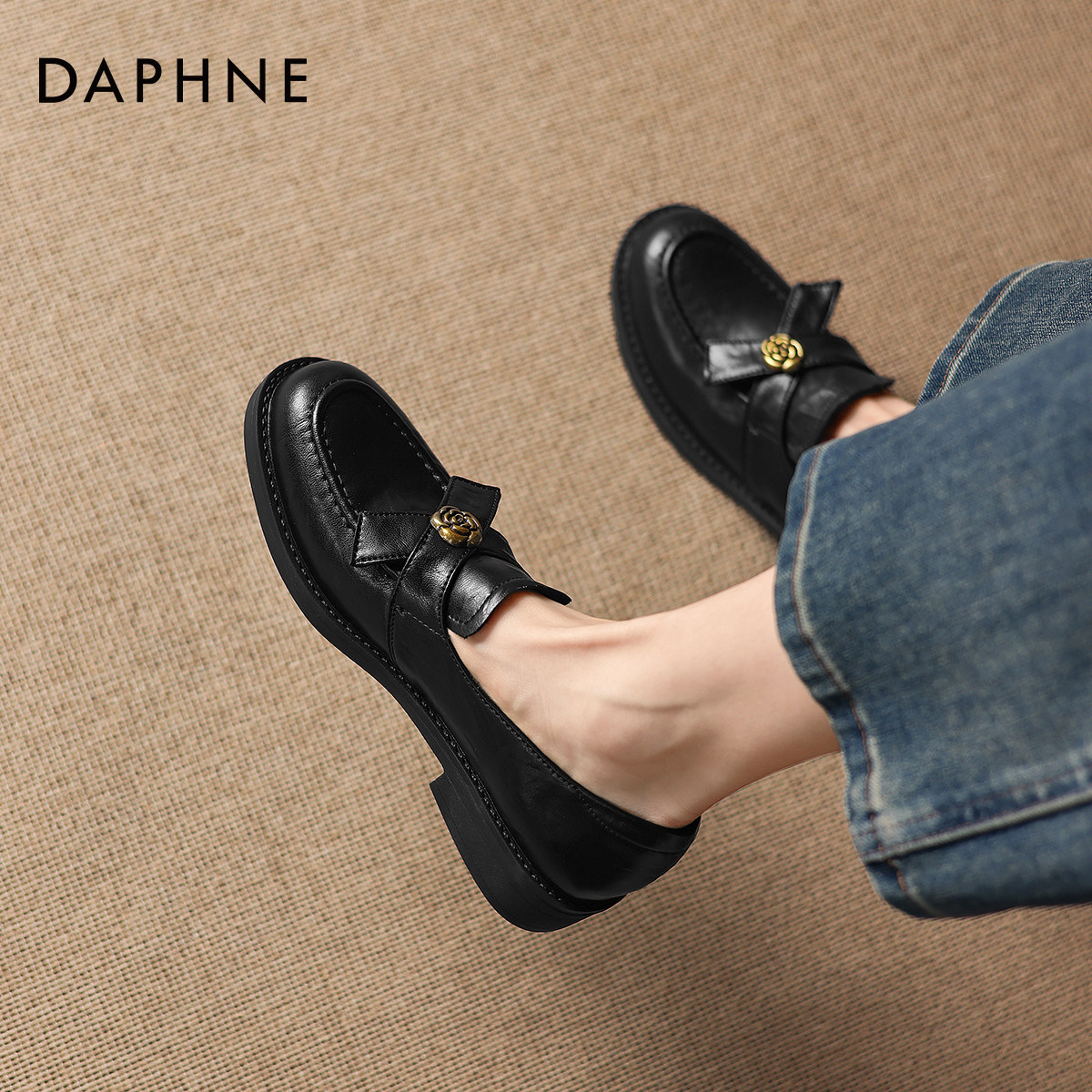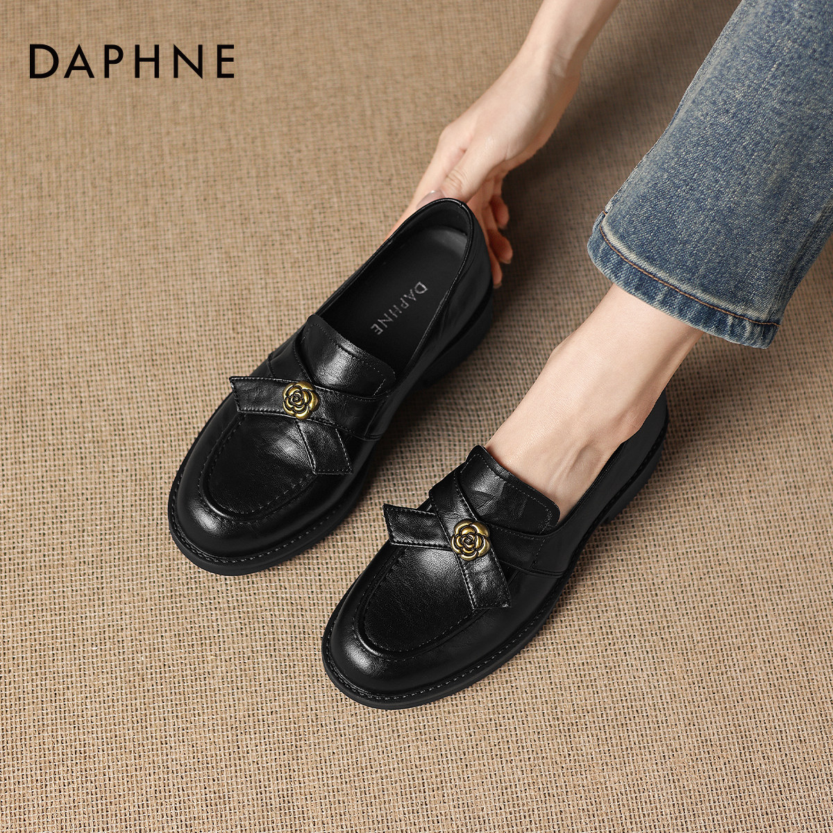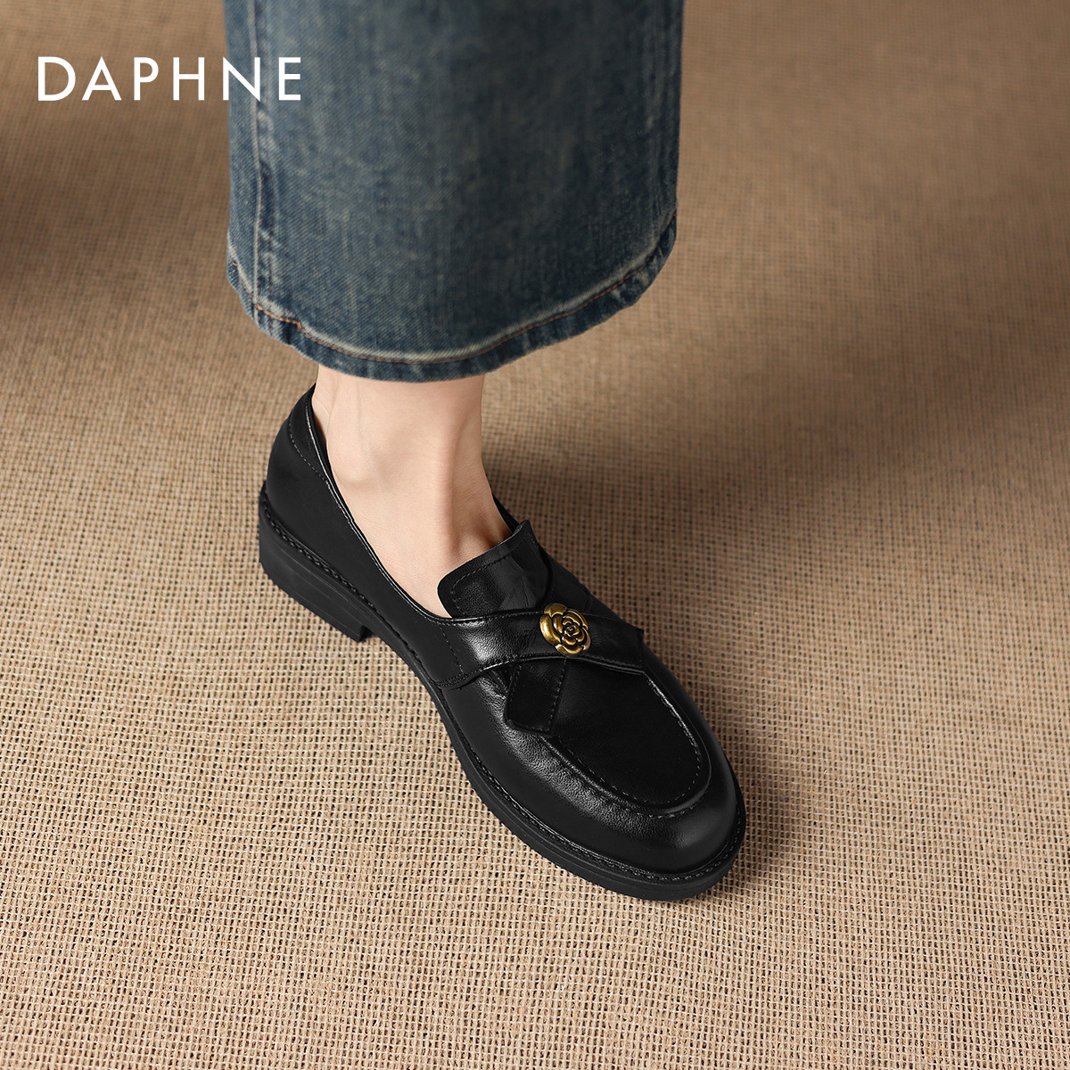 达芙妮黑色乐福鞋女2026新款春季一脚蹬小皮鞋豆豆鞋通勤平底单鞋