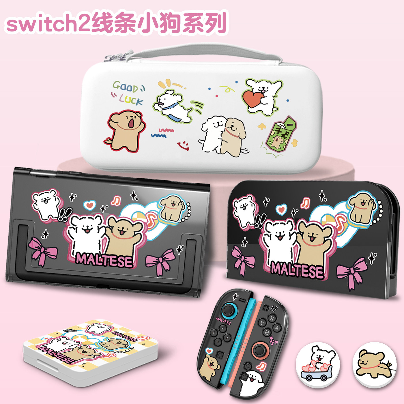 任天堂switch2代保护壳分体硬壳线条小狗NS2游戏机配件防摔保护套