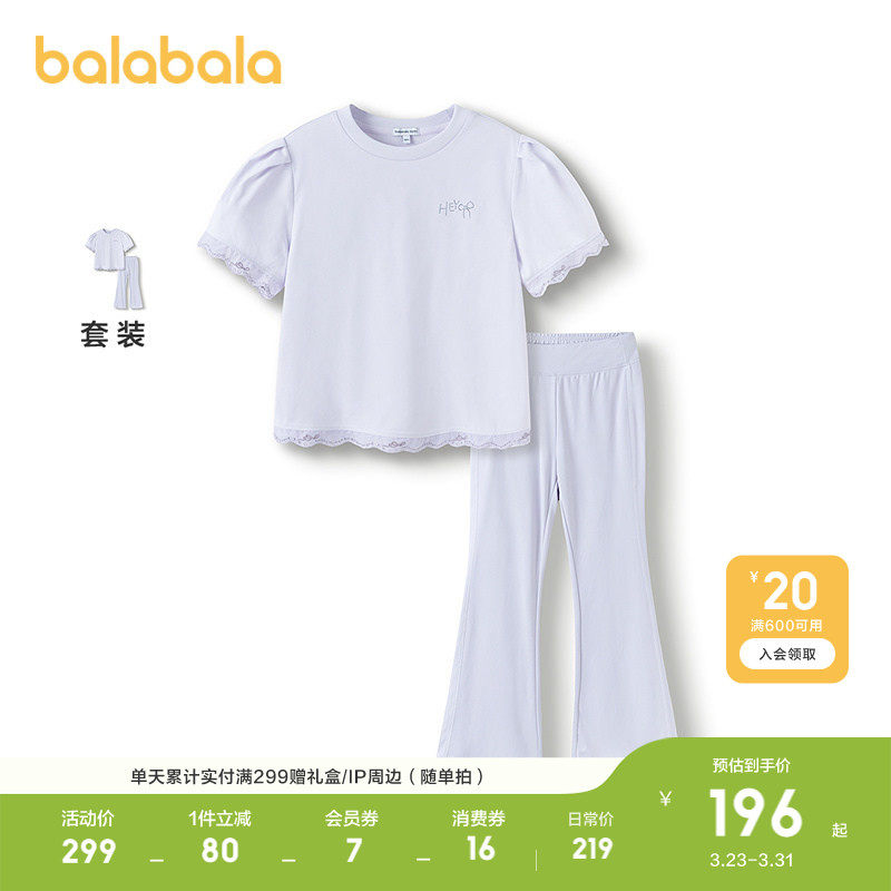 巴拉巴拉童装儿童短袖套装女童2026夏两件套长裤速干时尚百搭洋气