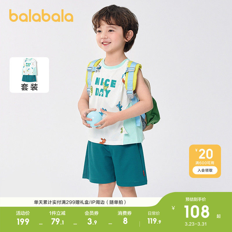 巴拉巴拉童装男童短袖套装宝宝两件套2026夏休闲印花时尚百搭洋气