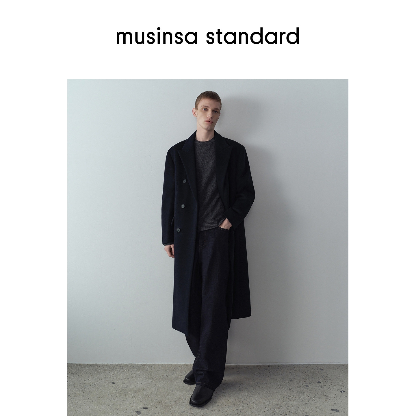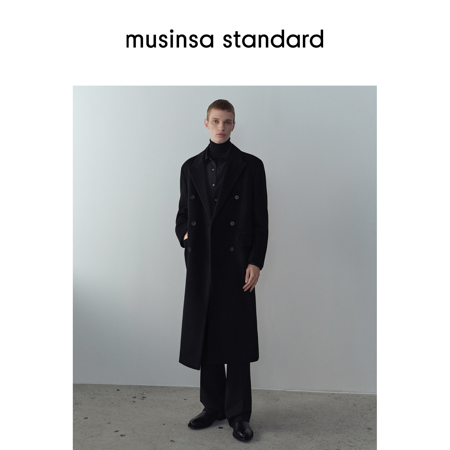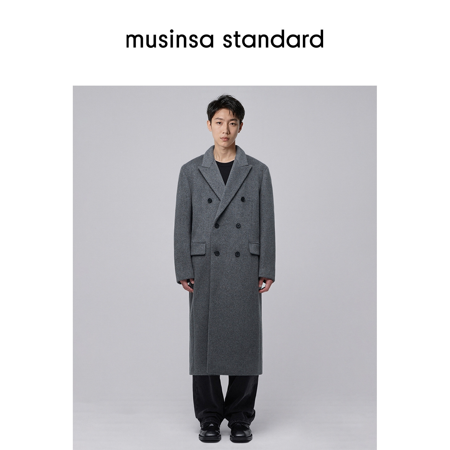 韩国25秋冬男士大码混纺双排扣长款毛呢大衣外套musinsa standard