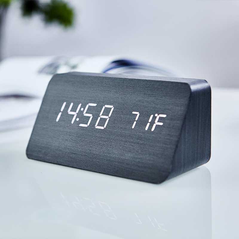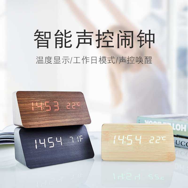 LED木头钟数字usb电子钟卧室声控夜光led座钟闹钟夜光闹钟