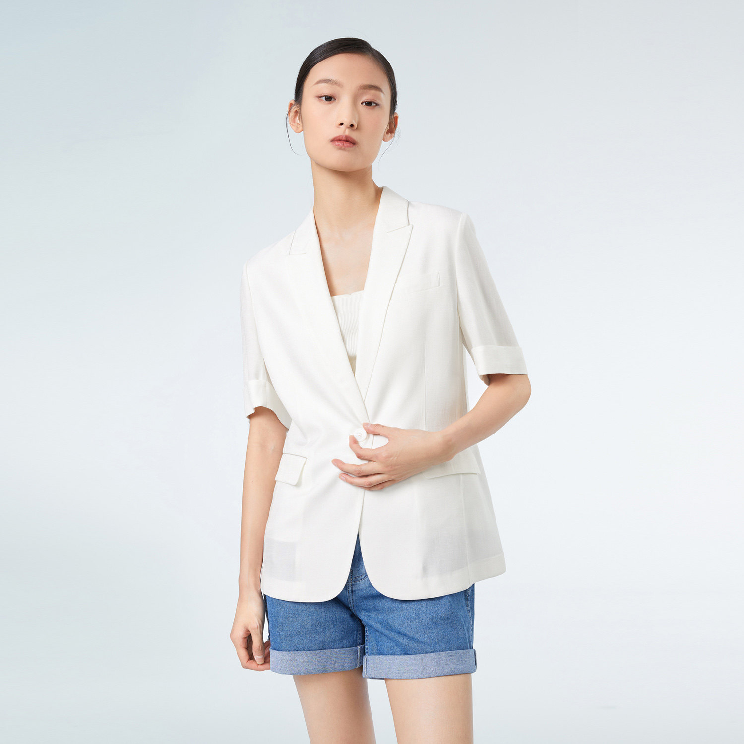 醋酸仿麻 一粒扣设计 通勤休闲