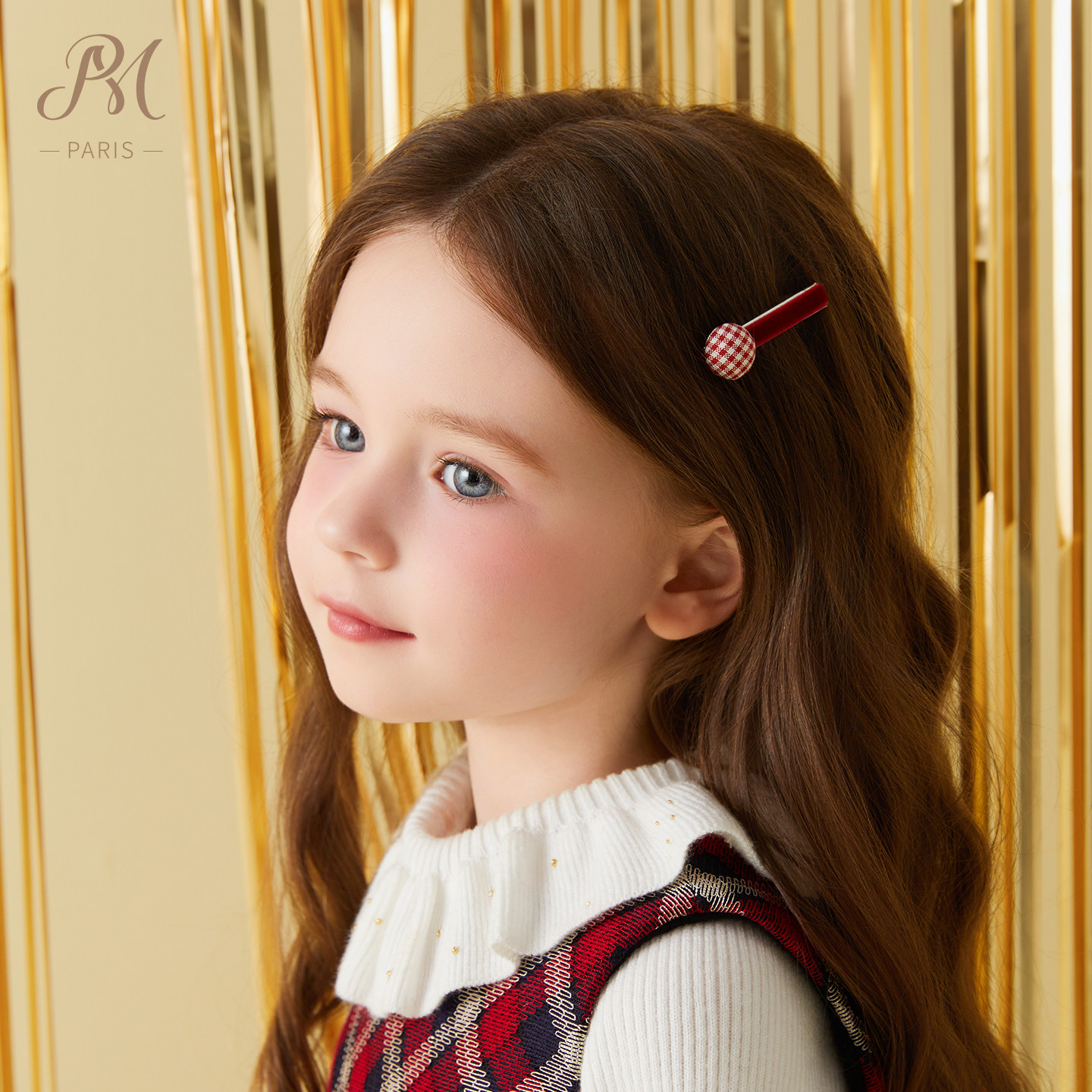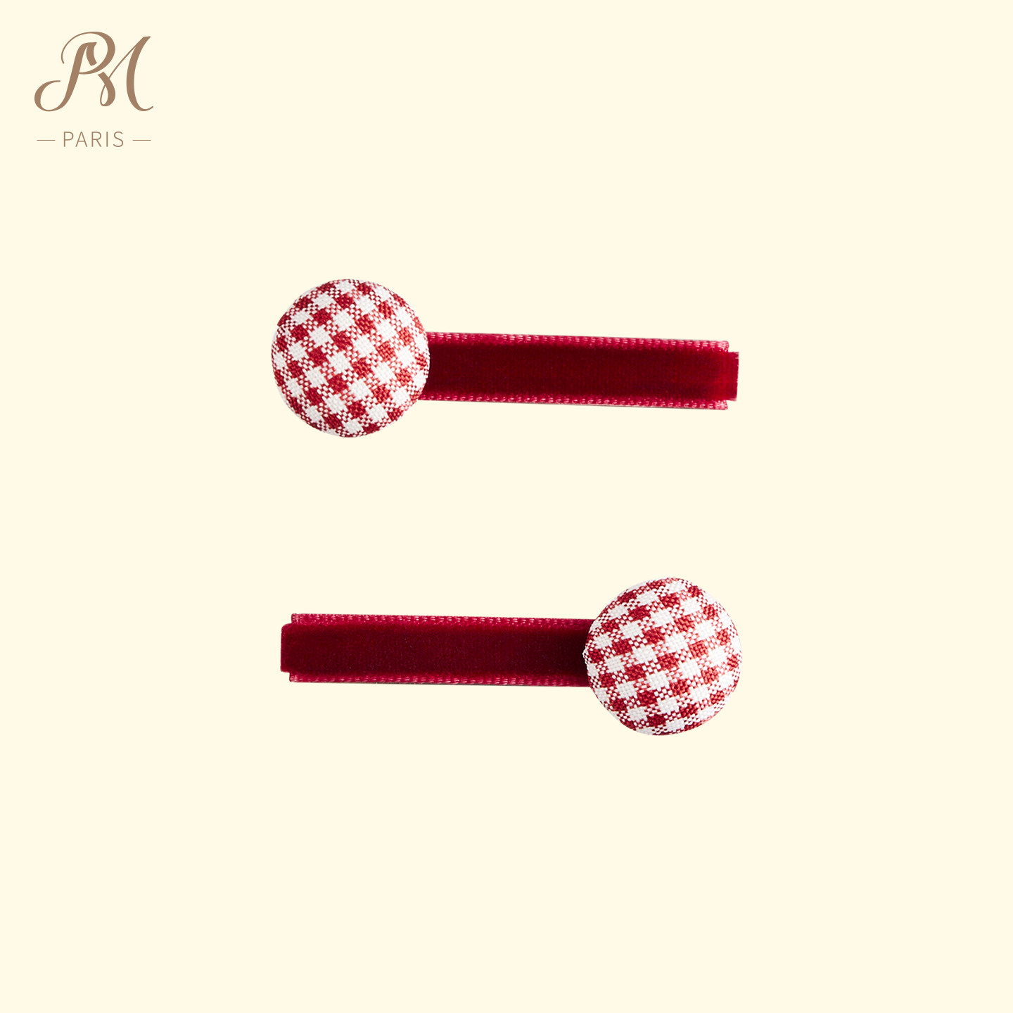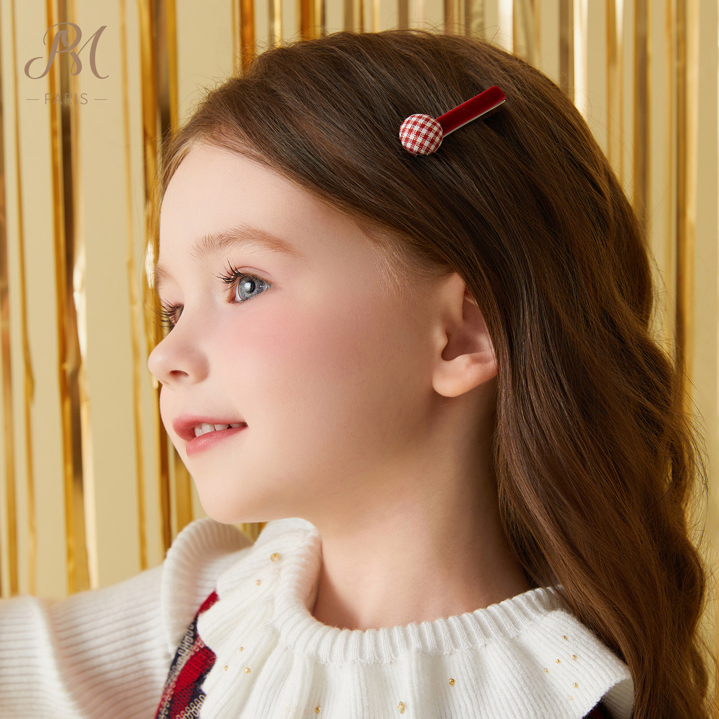 Petite Marguerite小雏菊童装·甜美百搭女红色丝绒格子圆扣发夹