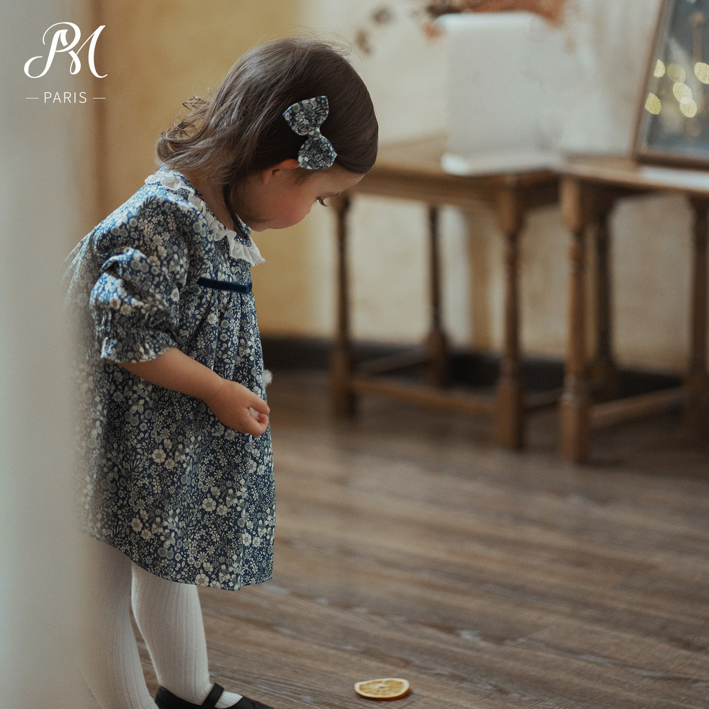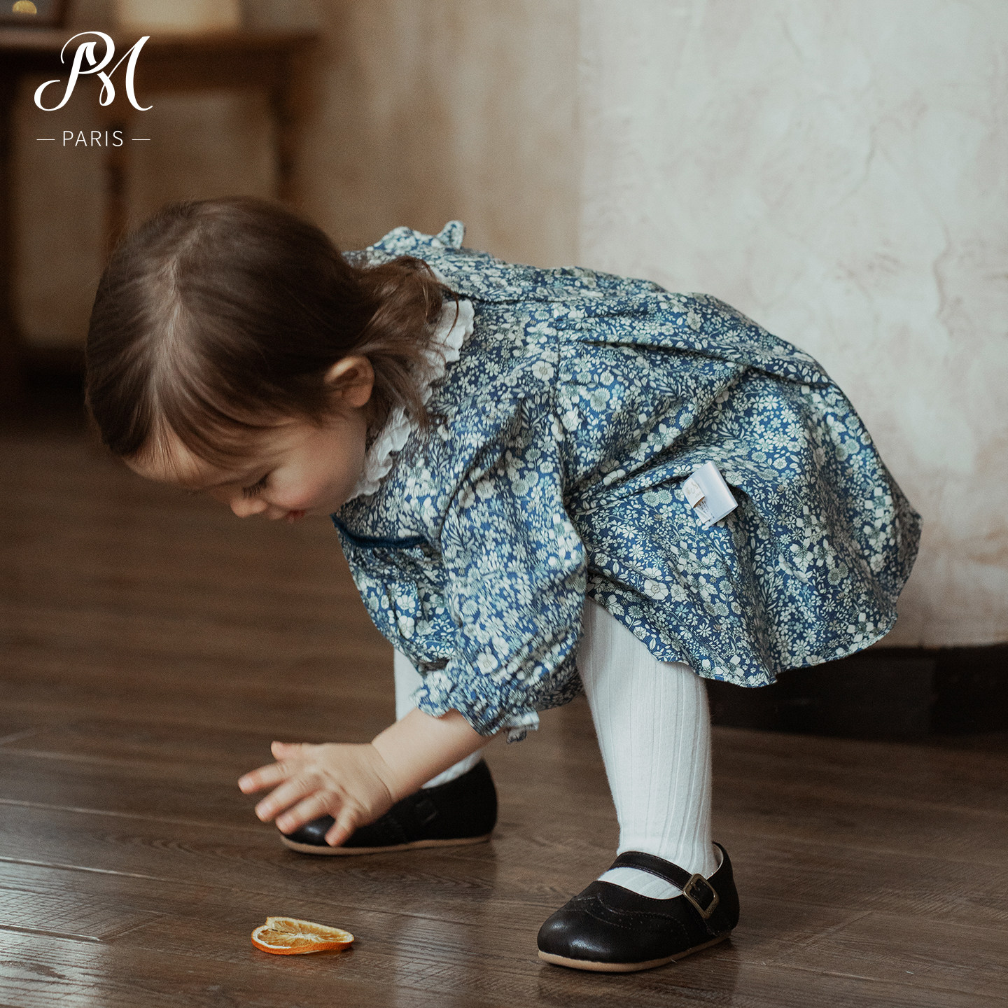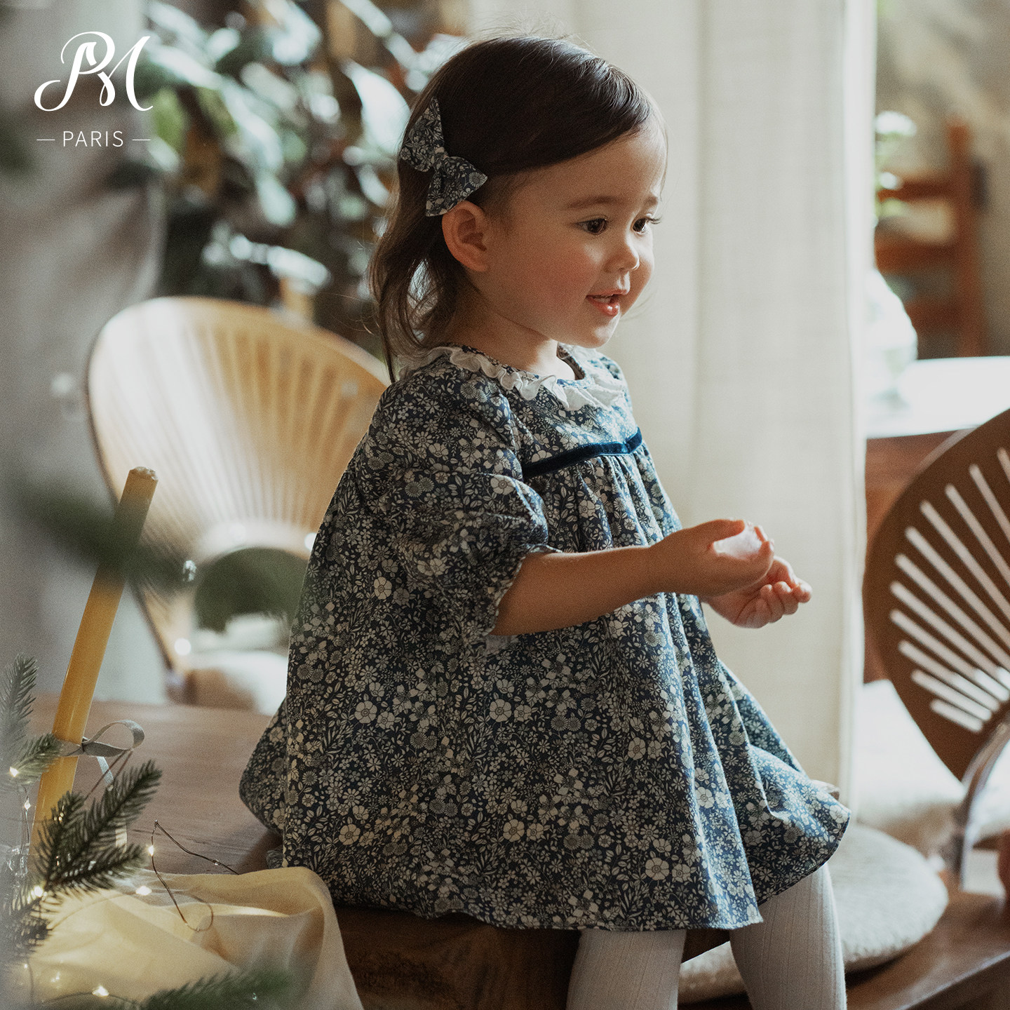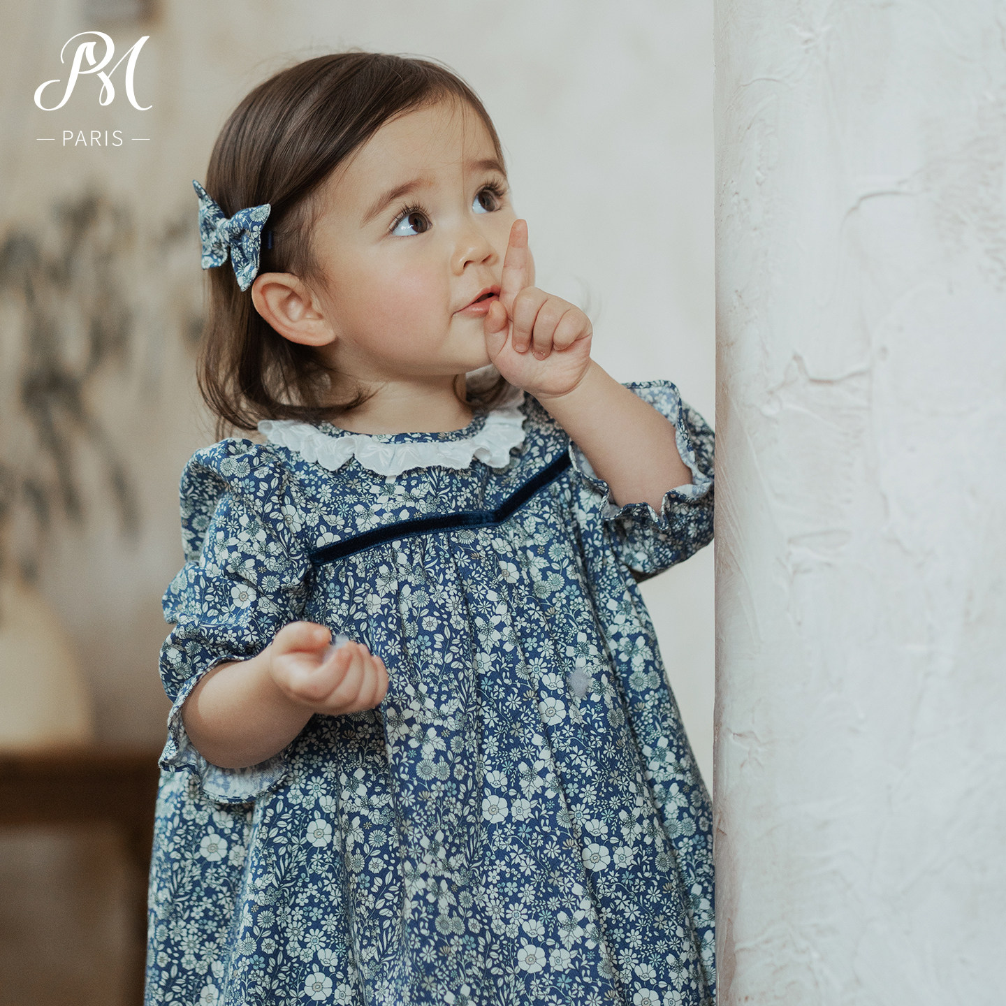 Petite Marguerite小雏菊婴童·利伯缇花边领蓝色碎花连衣裙
