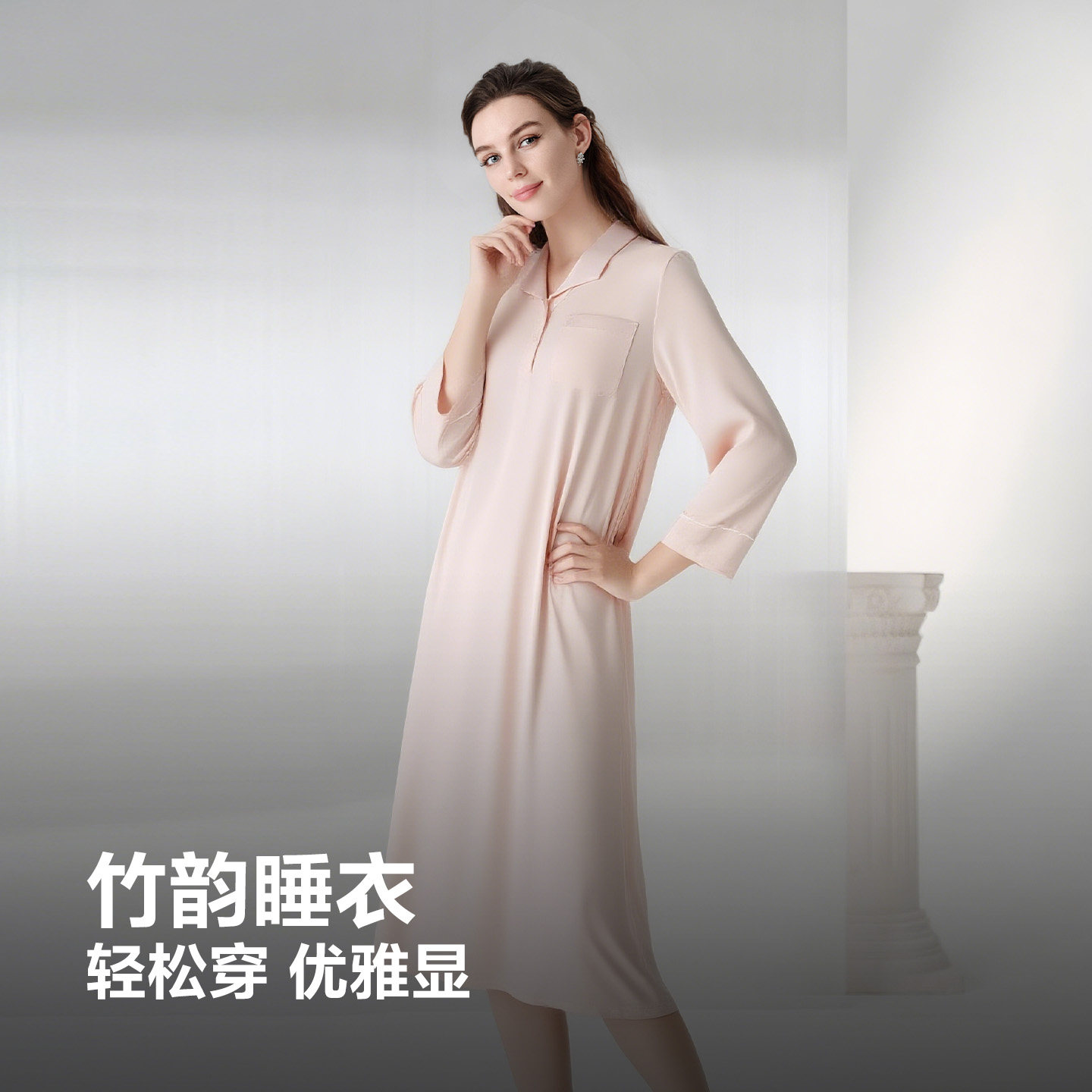[亲肤感真丝][100%桑蚕丝][真丝丝滑睡衣] 金三塔性感V领吊带睡裙
