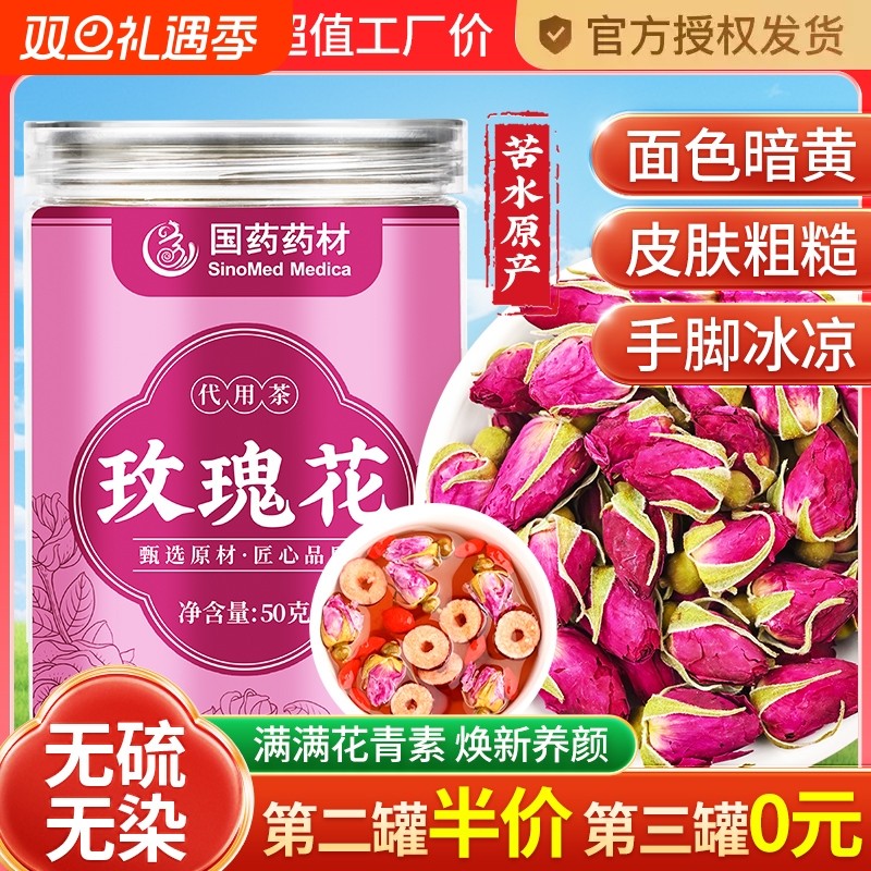 国药药材甘肃苦水玫瑰花茶特级大朵无硫熏疏肝解郁官方旗舰店正品