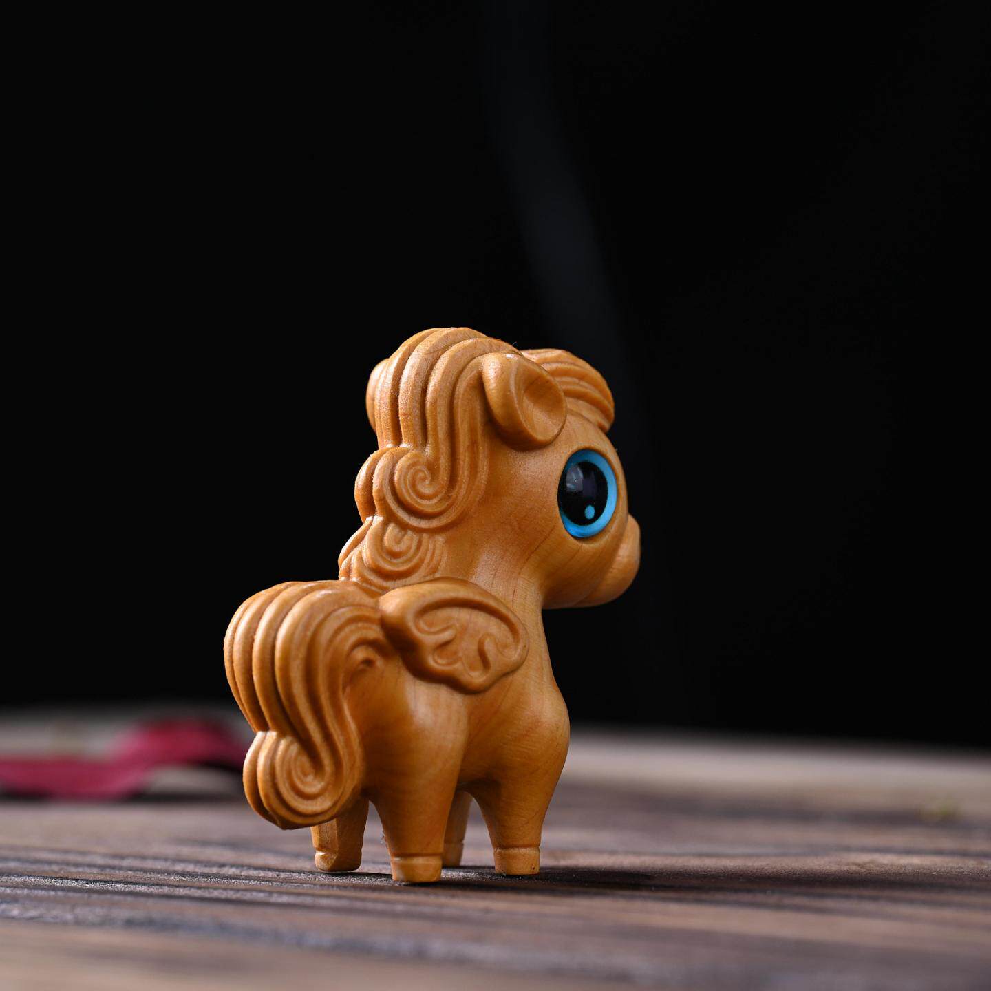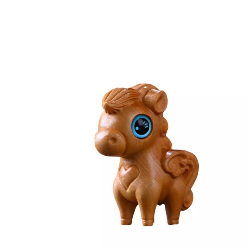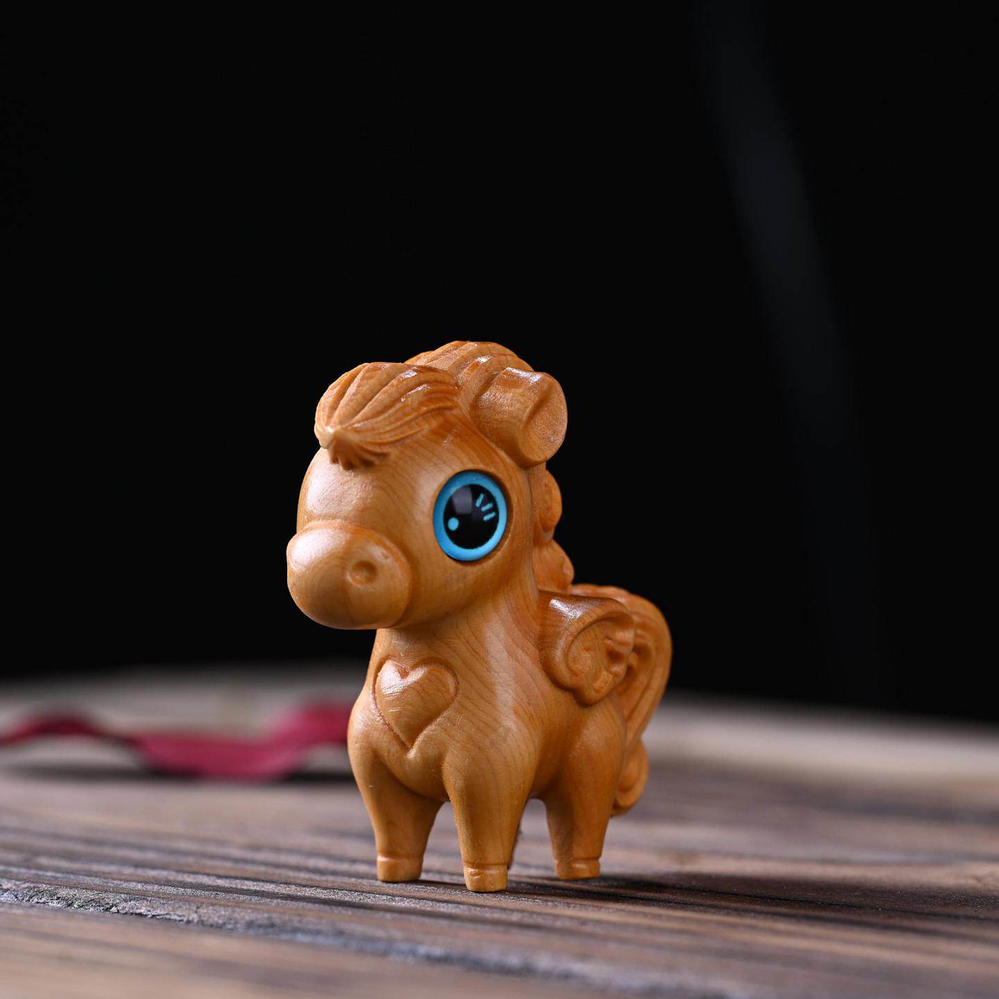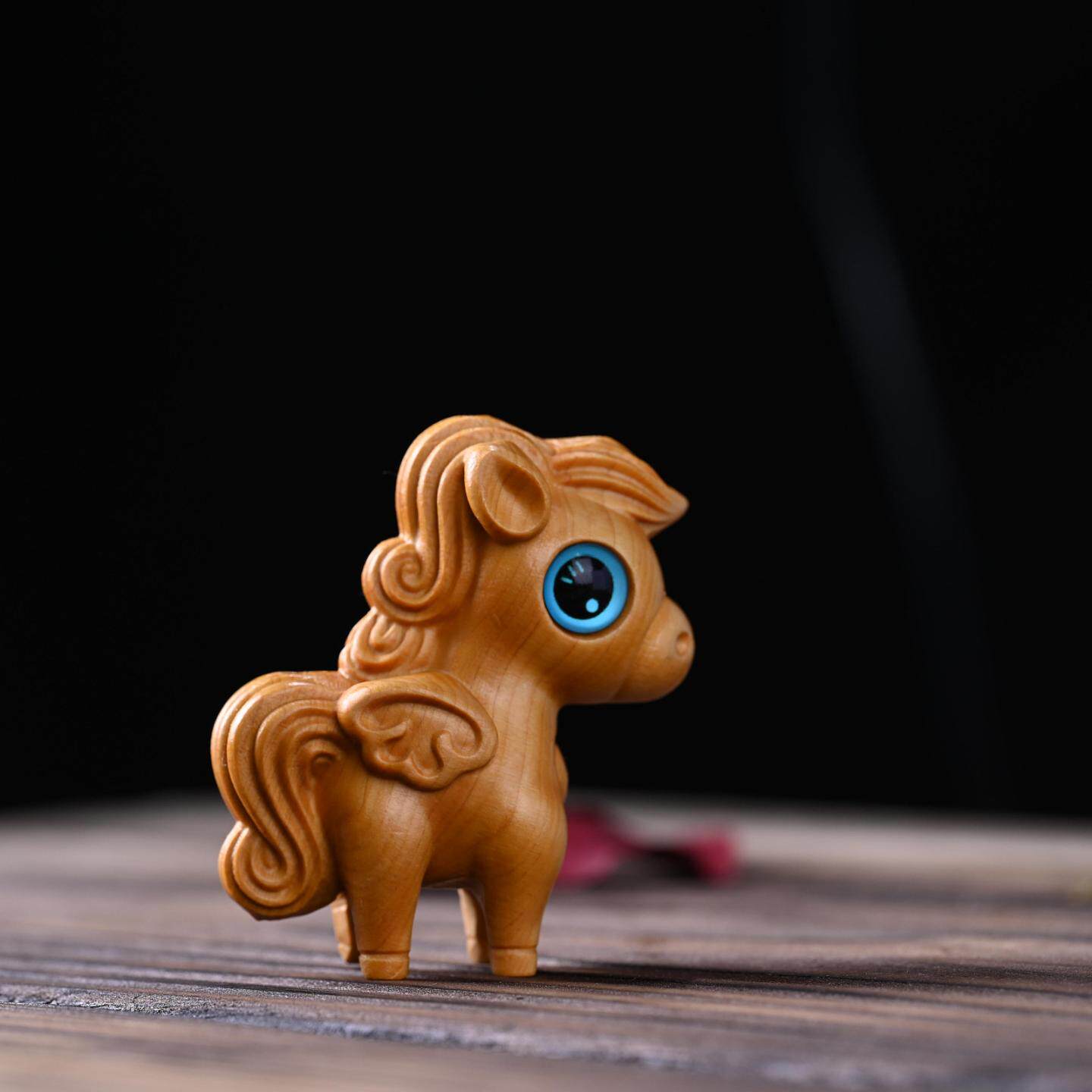 崖柏卡通动物小马驹保丽文玩手把件实木雕刻家居桌面装饰可爱摆件