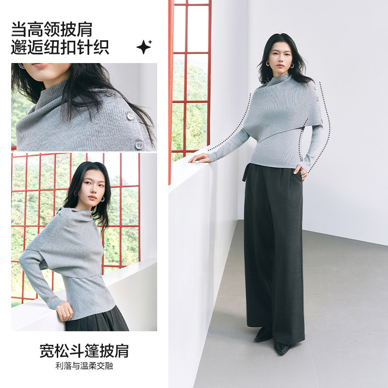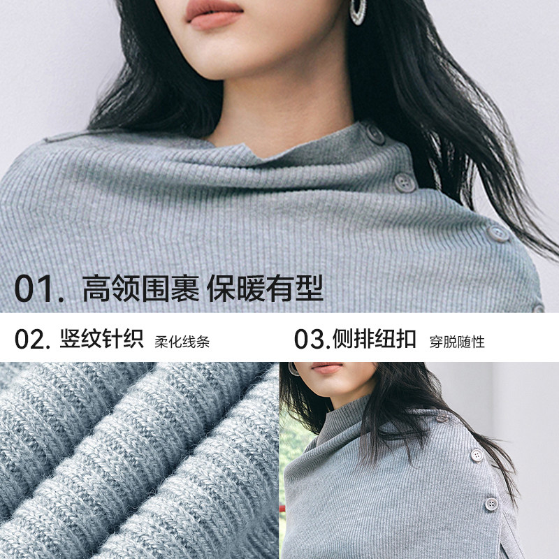 爱居兔不规则针织衫女2026年春季新款高领斗篷披肩两件式打底衫