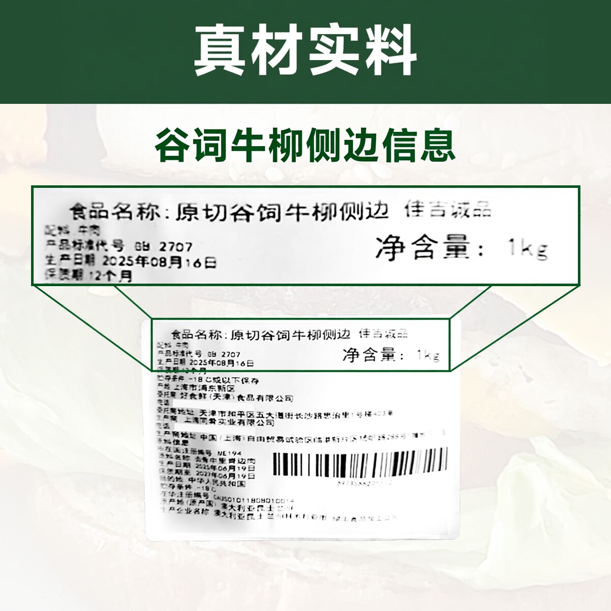 【吉杰】佳吉诚品澳洲原切谷饲牛柳侧边菲力侧唇牛排1kg 原切牛肉