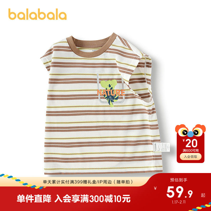 巴拉巴拉童装男童背心条纹上衣无袖内搭2025夏装新款时尚百搭洋气