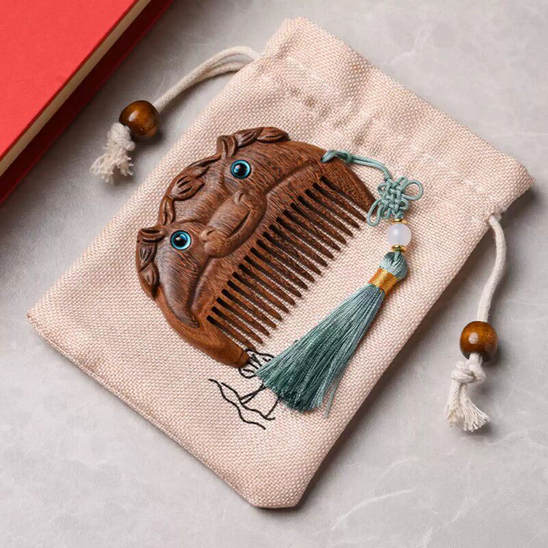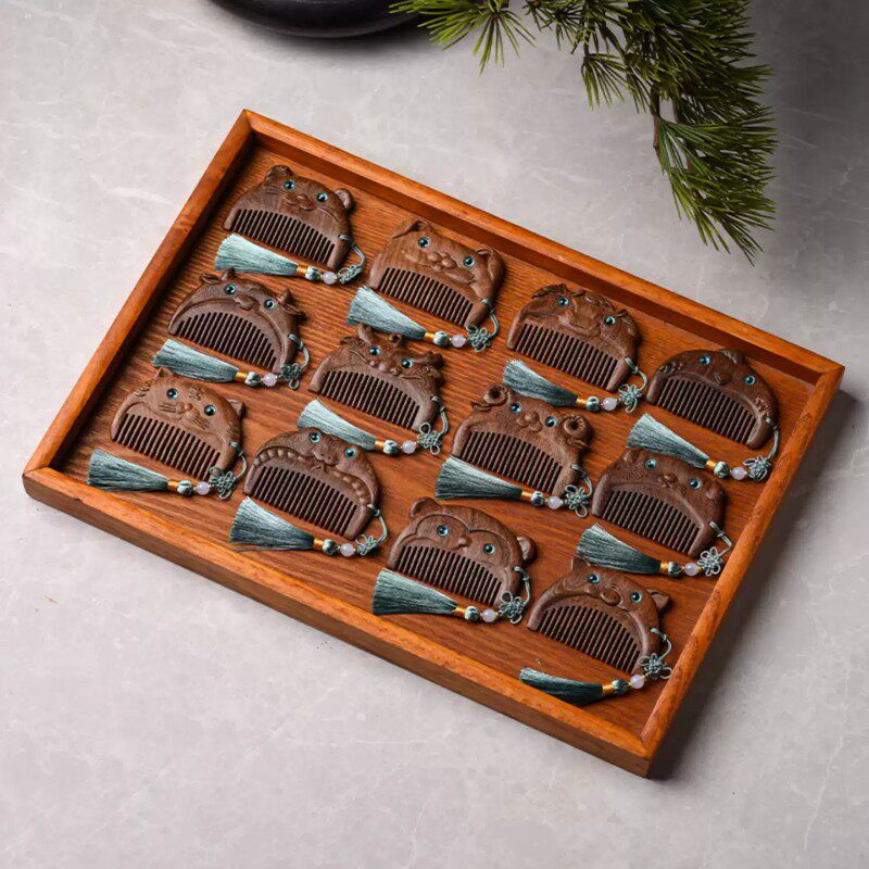 生肖龙梳子儿童宝宝桃木礼盒装百天周岁抓周梳小巧绿檀黑送礼便携