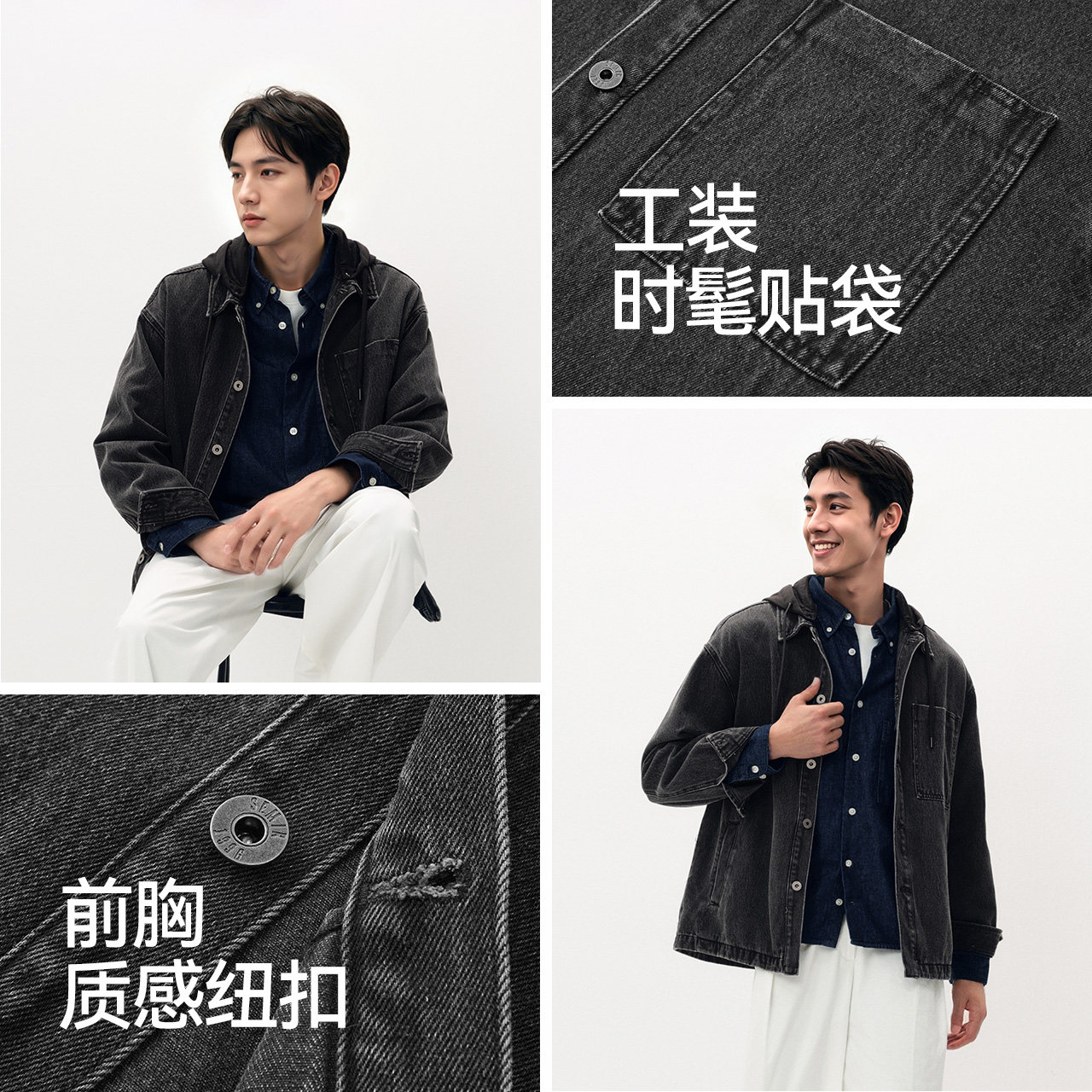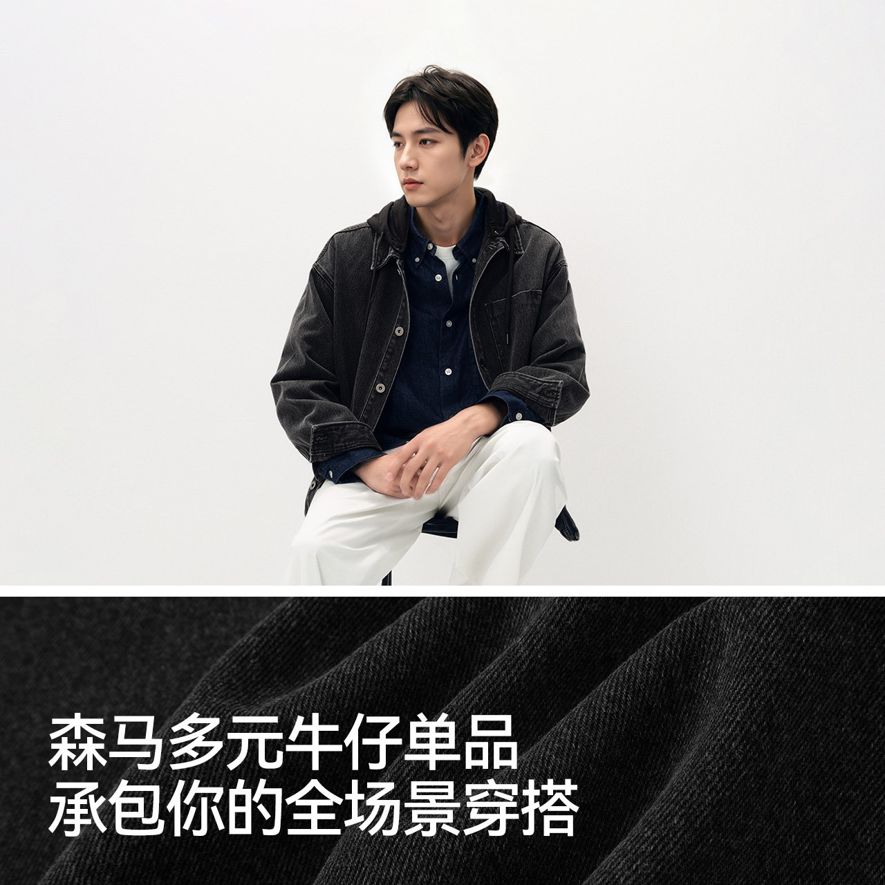 森柔牛仔|商场同款森马牛仔夹克男衬衫式工装连帽外套2025秋新款