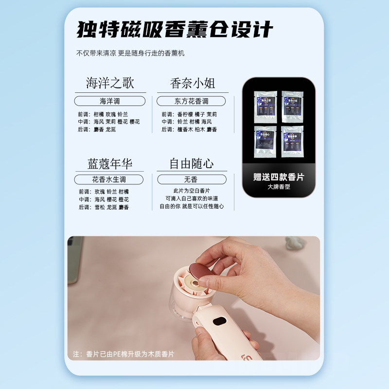 【夏日香风来袭】手持小风扇香薰风扇 挂脖风扇USB充电长续航可随身携带静音手拿桌面强力暴力涡轮迷你便携式