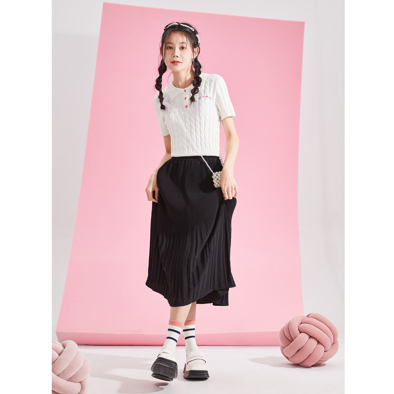 百褶裙女小个子夏季新款高腰显瘦半身裙纯色大码学院风jk短裙套装