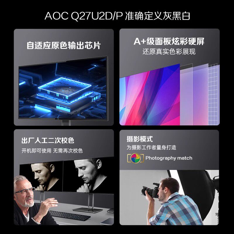 AOC Q27U2D/P 27英寸专业摄影剪辑2K显示器修图视频设计IPS电脑屏