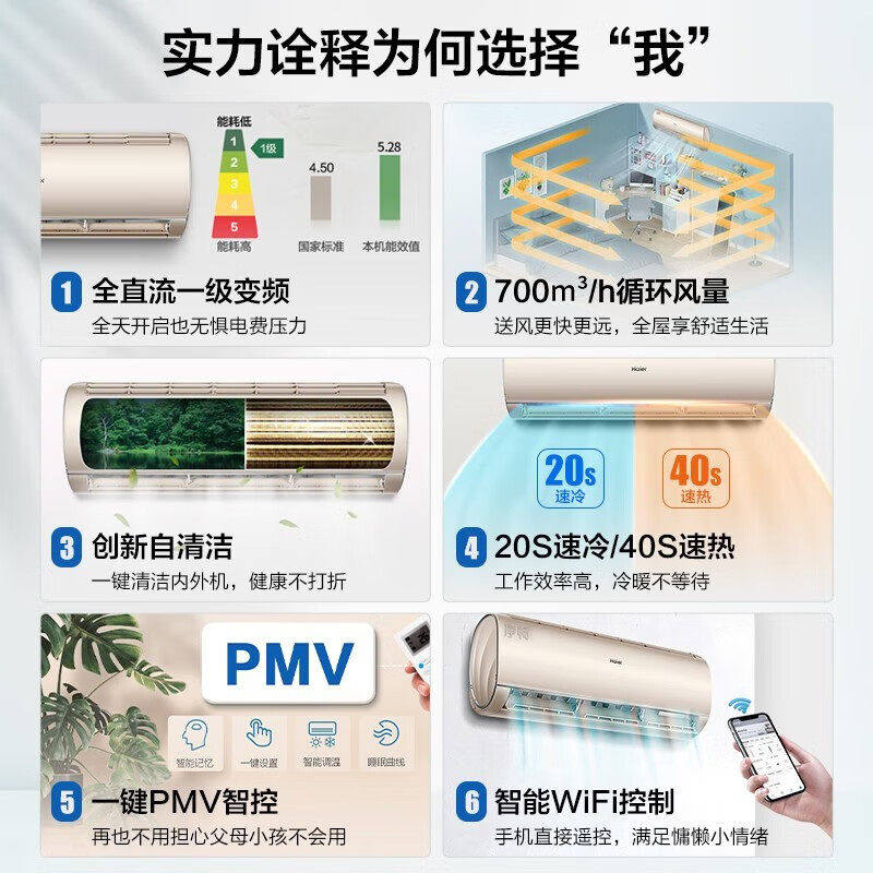 海尔空调套装三室一厅一级能效变频防直吹