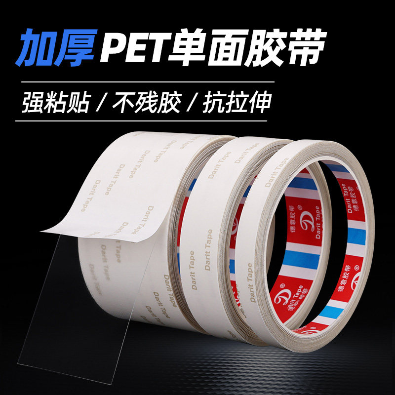 透明加厚加硬PET单面胶带耐高温无痕薄膜胶带5米长