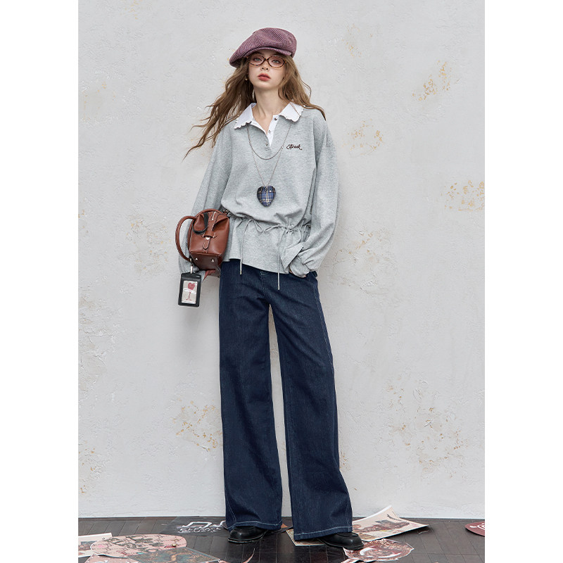 妖精的口袋复古休闲宽松水洗牛仔裤女2026年春秋新款百搭显瘦高腰