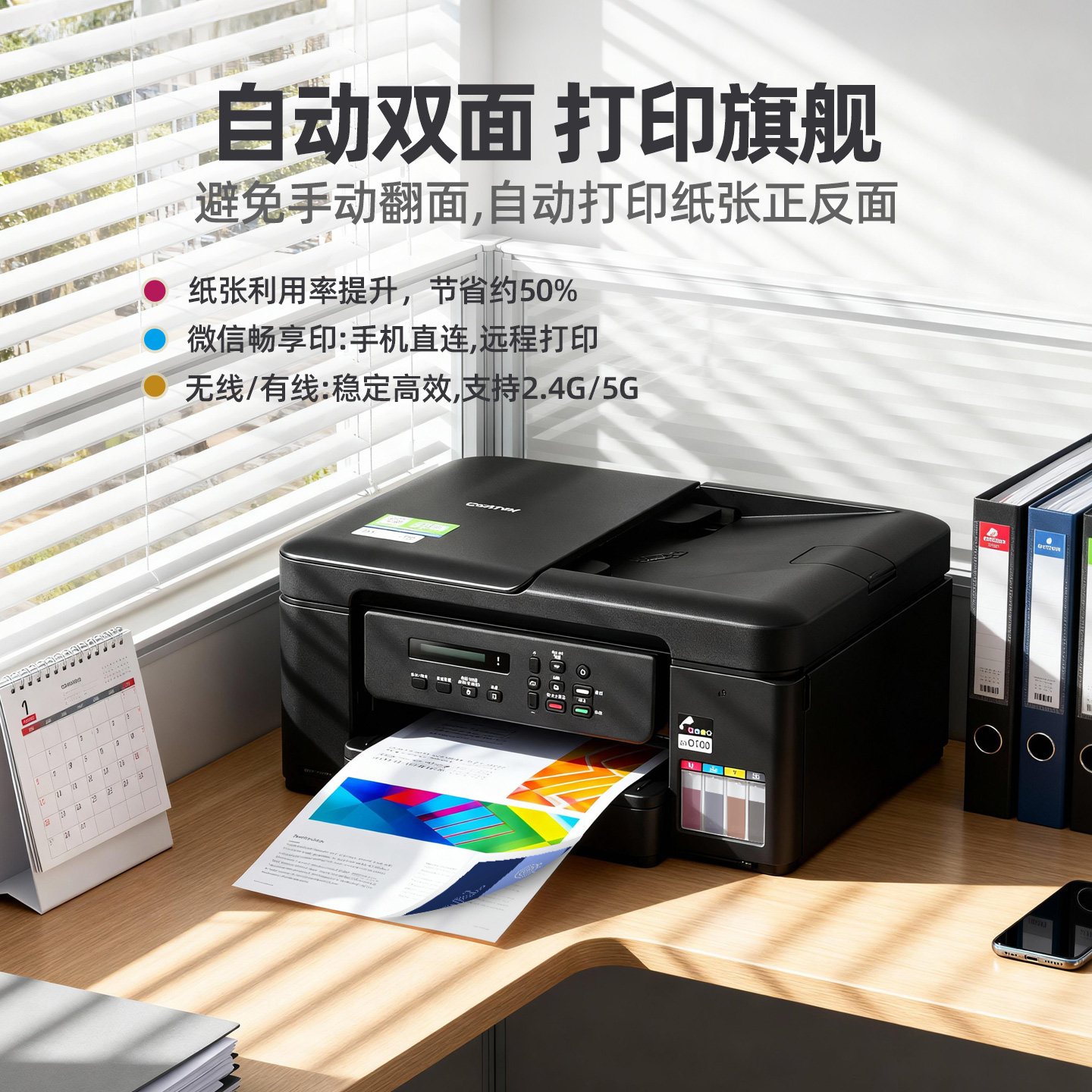 brother兄弟T735dw自动双面彩色打印机办公专用复印扫描一体机喷墨墨仓式家用无线可连手机彩印照片优激光