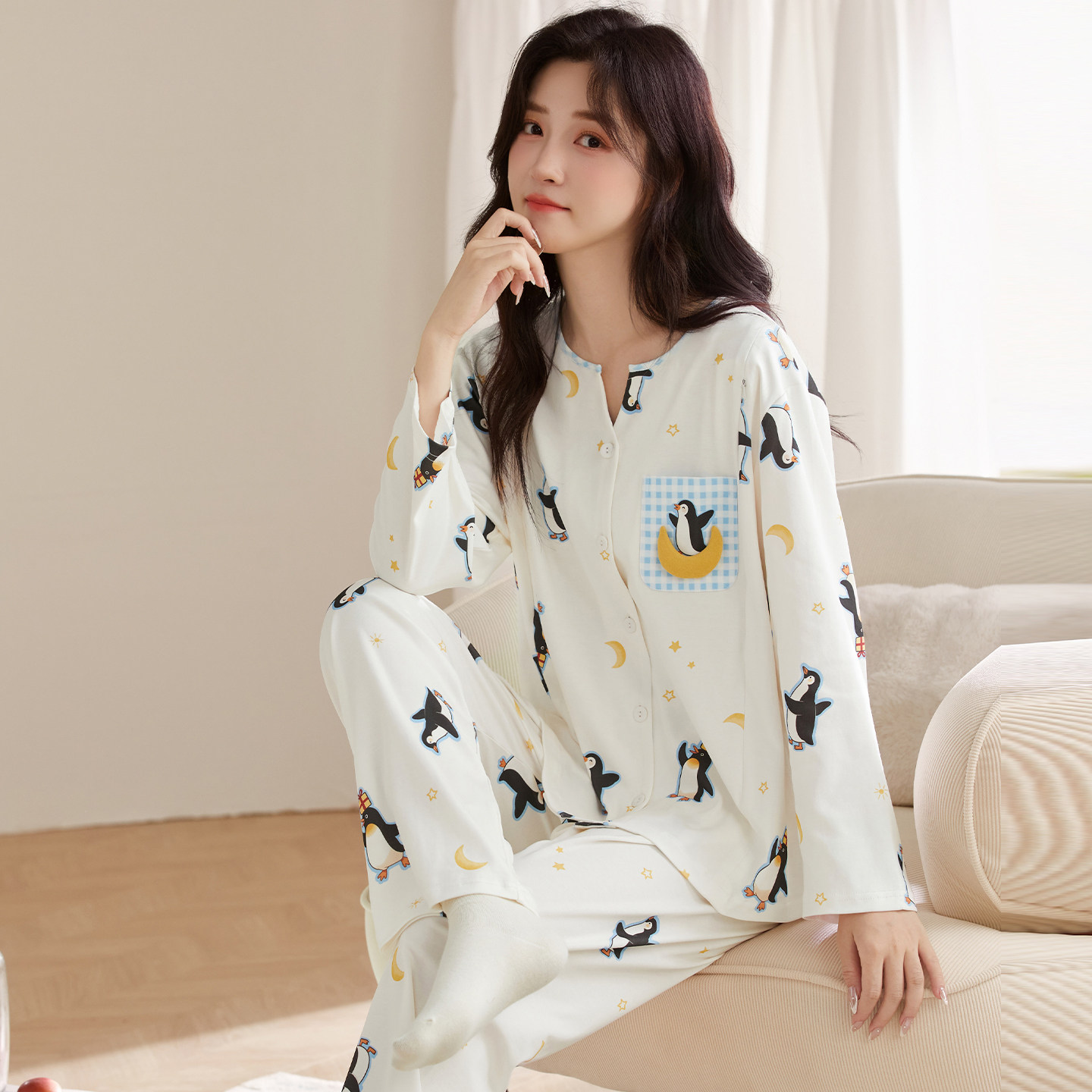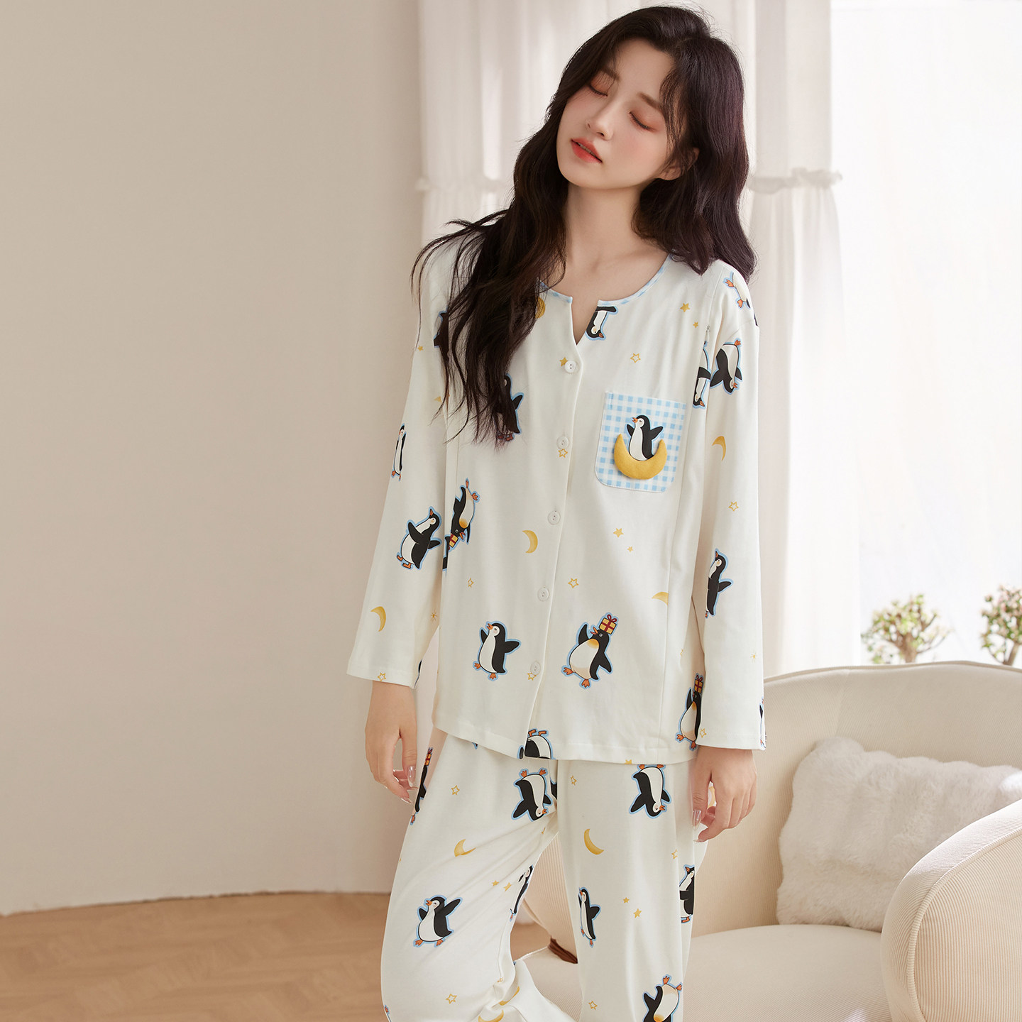 cutelife【轻羽】月子服女士长袖家居服孕妇竹棉哺乳睡衣秋冬套装