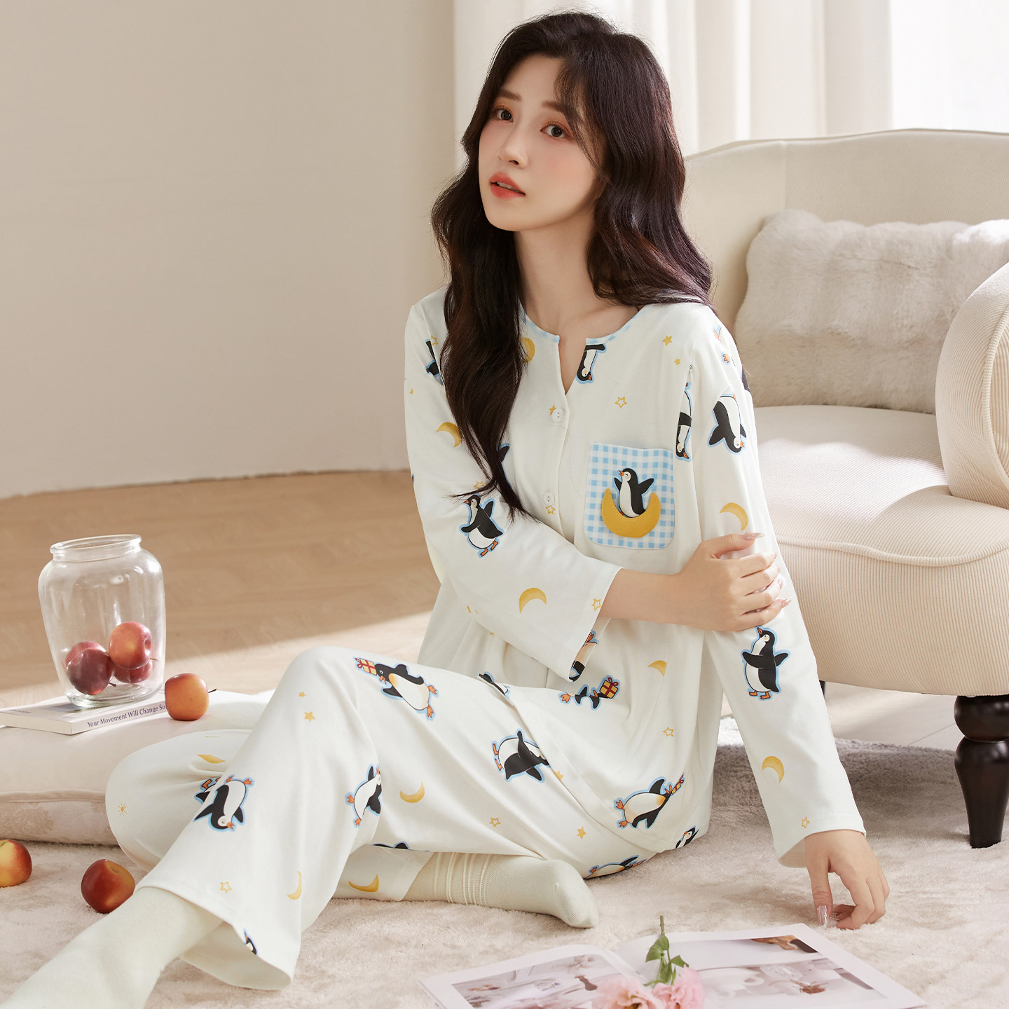 空气棉月子服秋冬纯棉产后夏季薄款全棉吸汗喂奶产妇哺乳孕妇睡衣