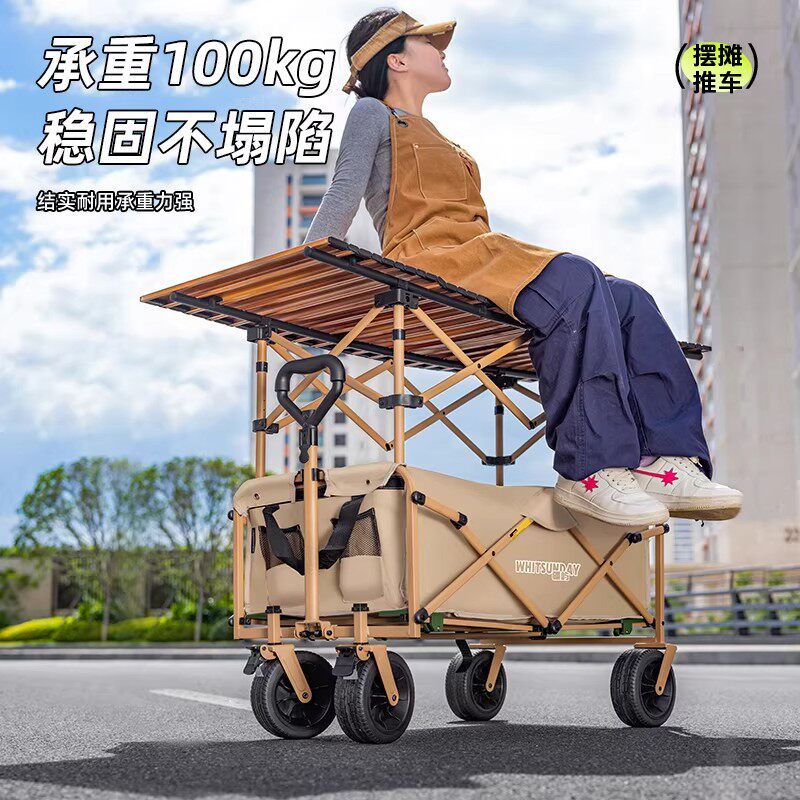 歌秀丹户外露营推车可折叠野营拖车快递小推车桌板摆摊野餐营地车