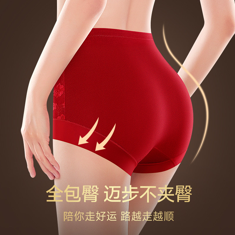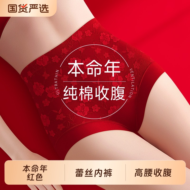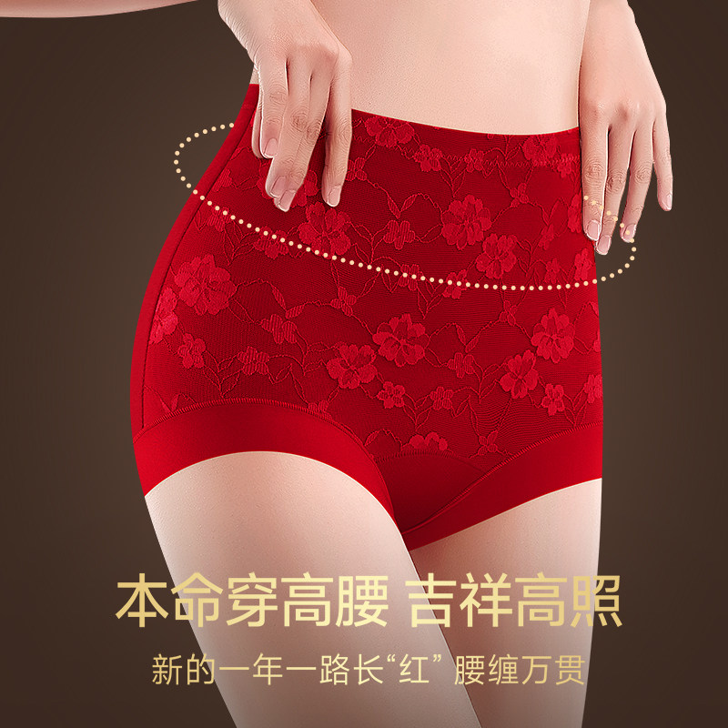 本命年蕾丝红色内裤女高腰收腹纯棉抗菌平角裤2026年属马结婚新娘