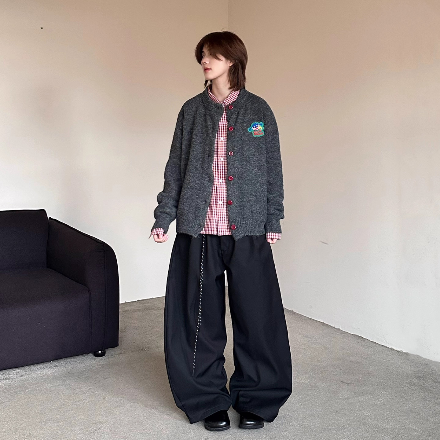 Ja1从不熬夜 慵懒风圆领毛衣外套男女情侣款宽松休闲针织开衫