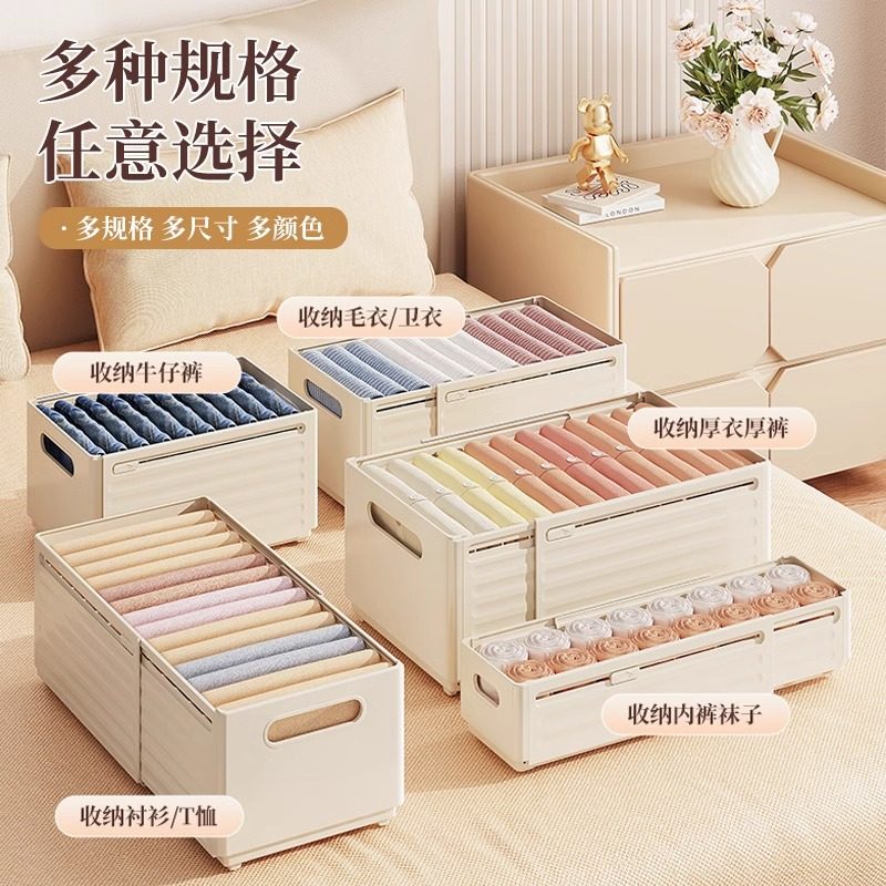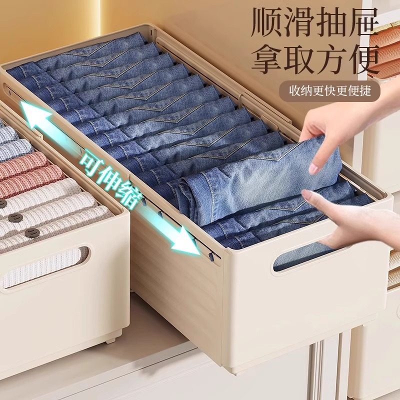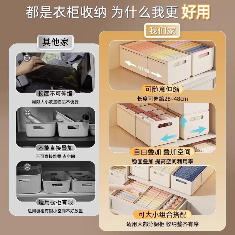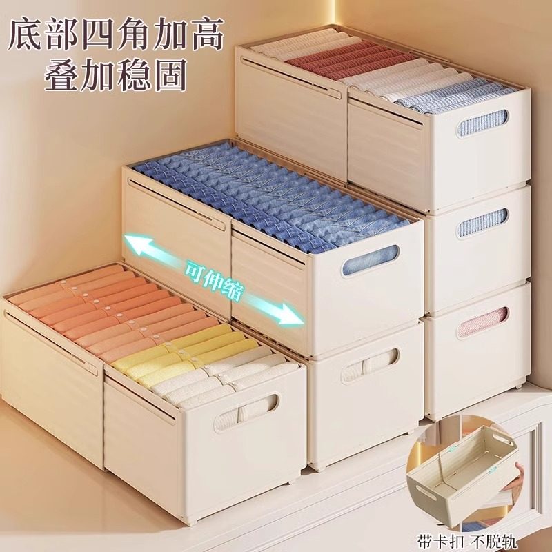 可伸缩衣服收纳盒家用内衣物收纳箱衣柜裤子收纳分层神器储物筐盒