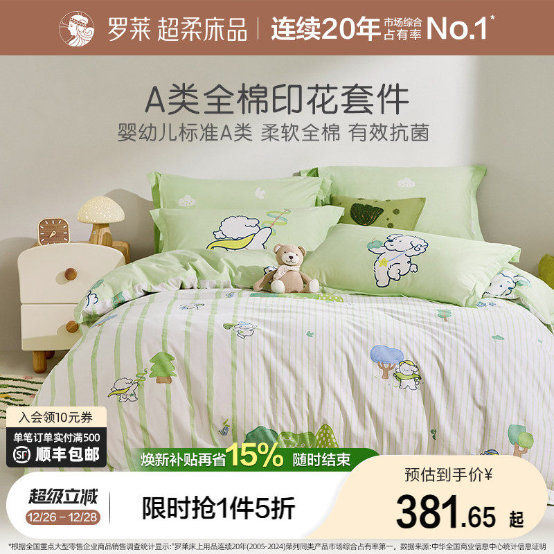 【断码清仓】罗莱家纺儿童床品新品纯棉全棉床单被套清新A类套件
