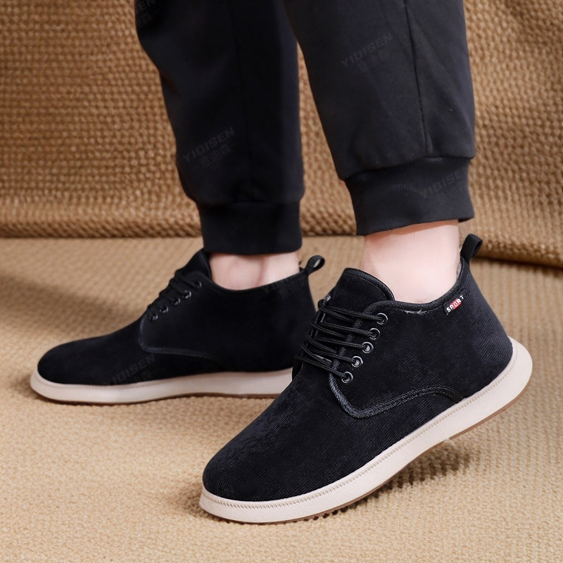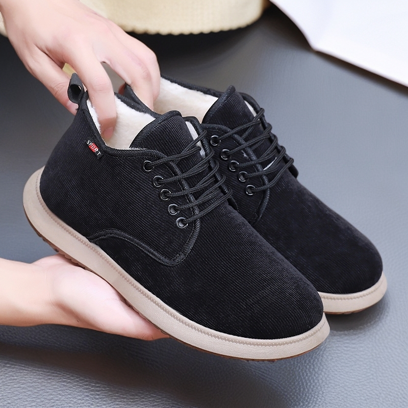 冬季加绒加厚老北京棉鞋男雪地靴中老年爸爸鞋防滑软底一脚蹬高帮