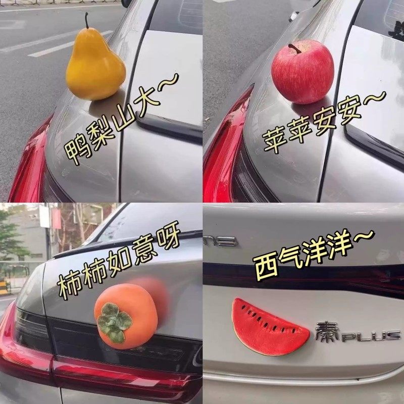 可爱创意苹果汽车尾部挂件车载水果橙子车内饰品摆件电动车顶装饰
