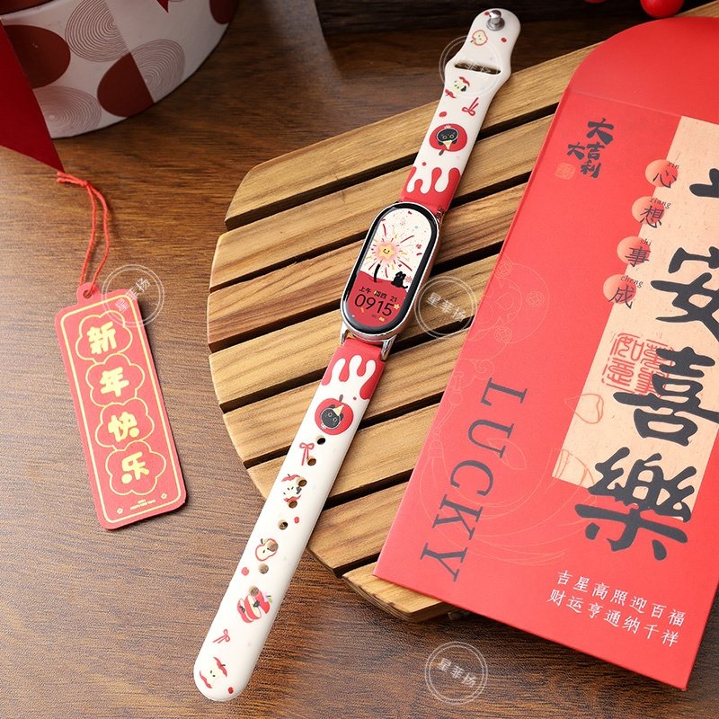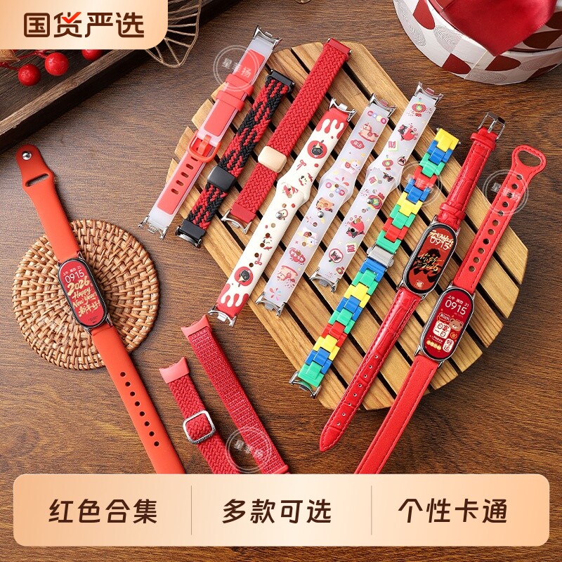 【2026年新款】适用小米手环9代NFC通用8nfc新年红合集表带三四五六七八九高级感皮质表带时尚潮流智能替换带