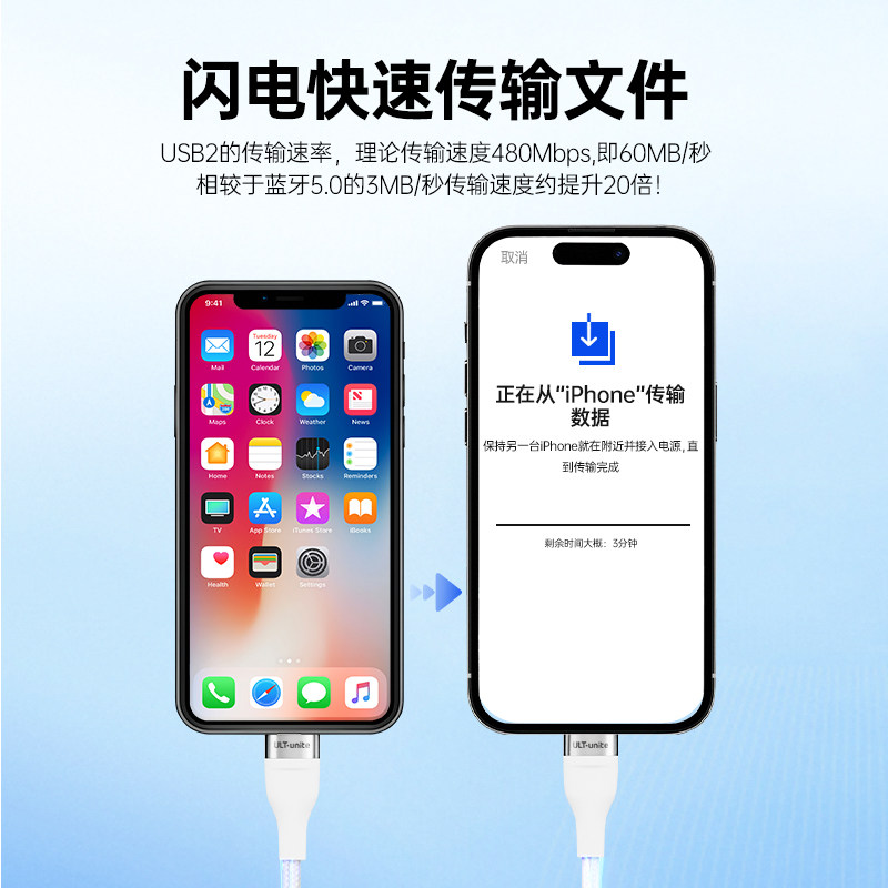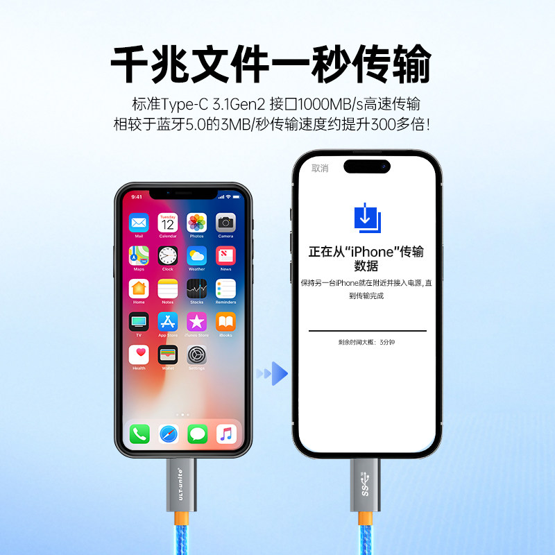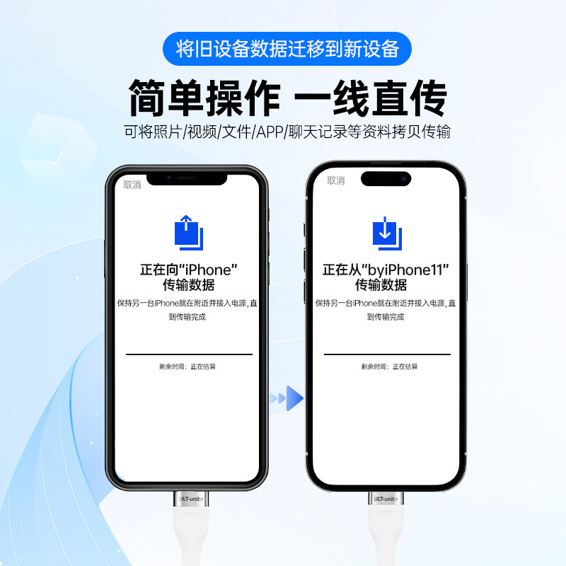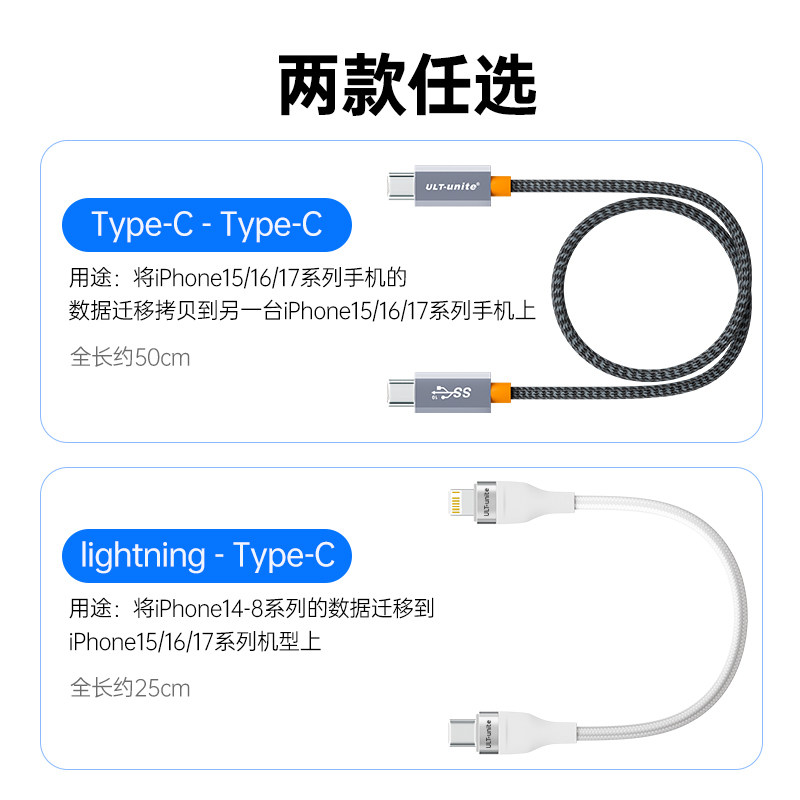 适用苹果手机互传iPhone数据迁移线iPhone14/15/16/17手机文件资料视频照片软件对拷连接线整机复制数据线