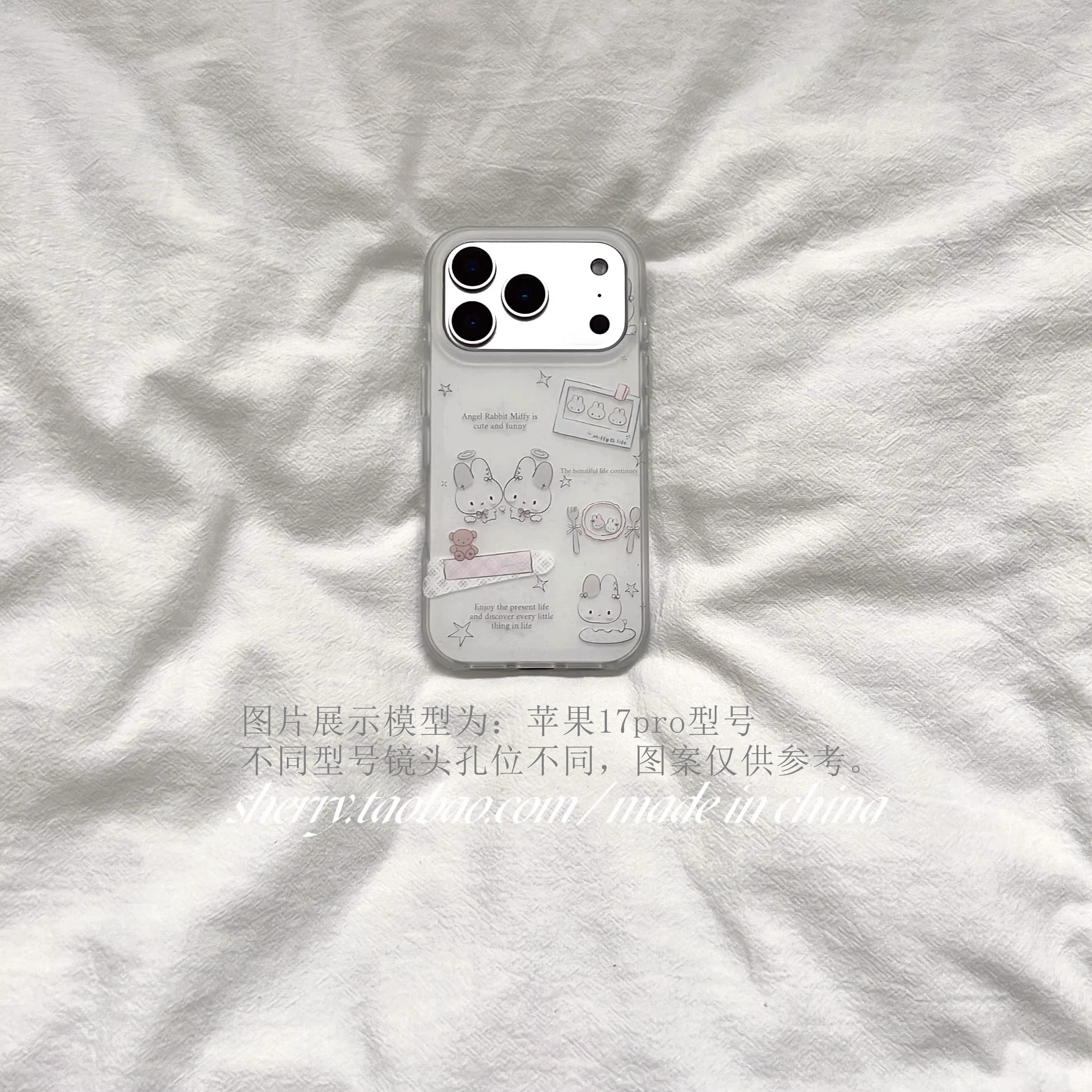 SHERRY*ins风肤感餐具小兔子软萌适用于苹果17ProMax手机壳iPhone16Pro小众少女心15简约14小清新卡通可爱冬