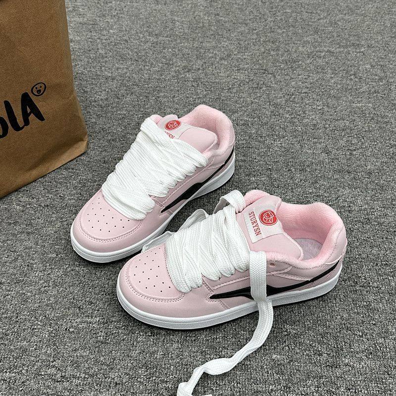 加绒板鞋女秋冬款韩版小众棉鞋ins学生百搭休闲运动面包鞋女圆头