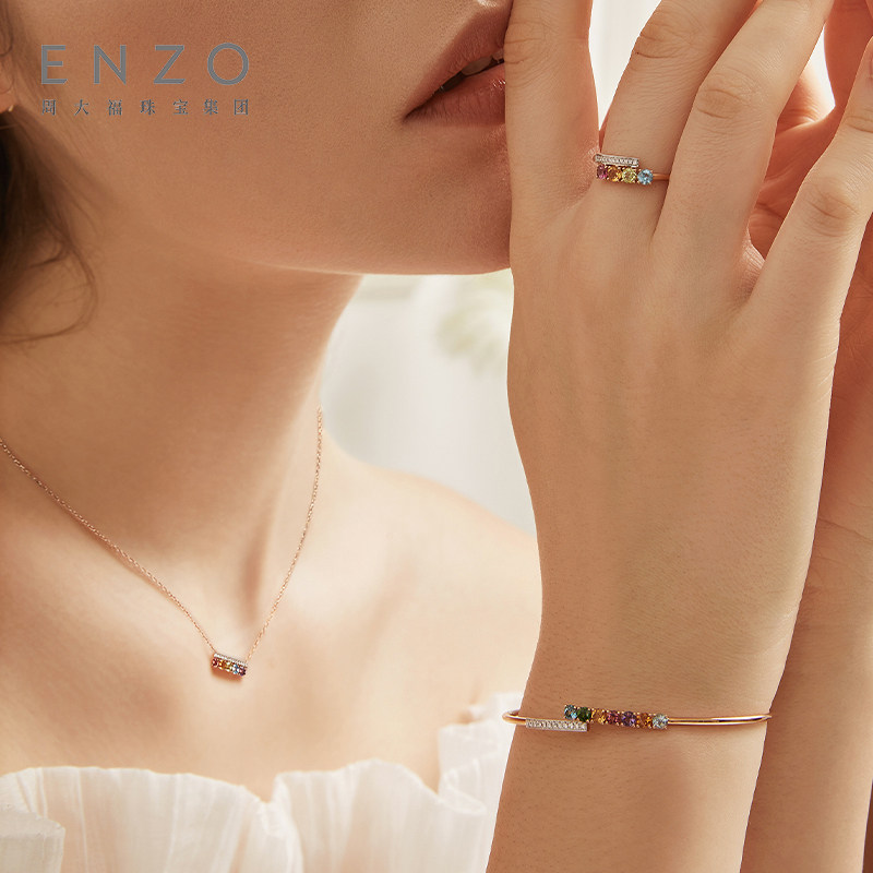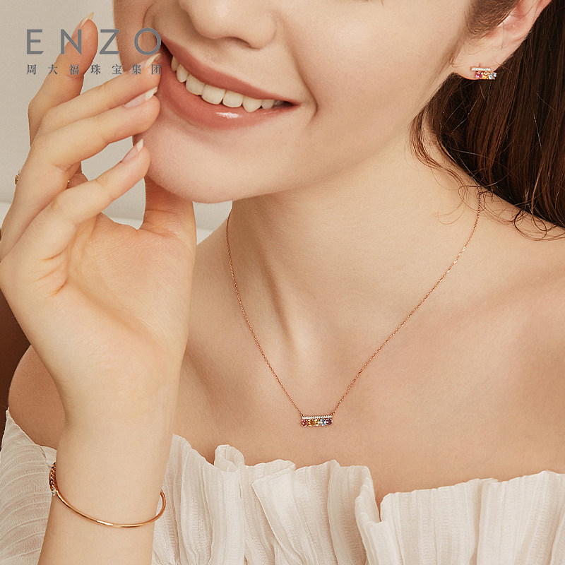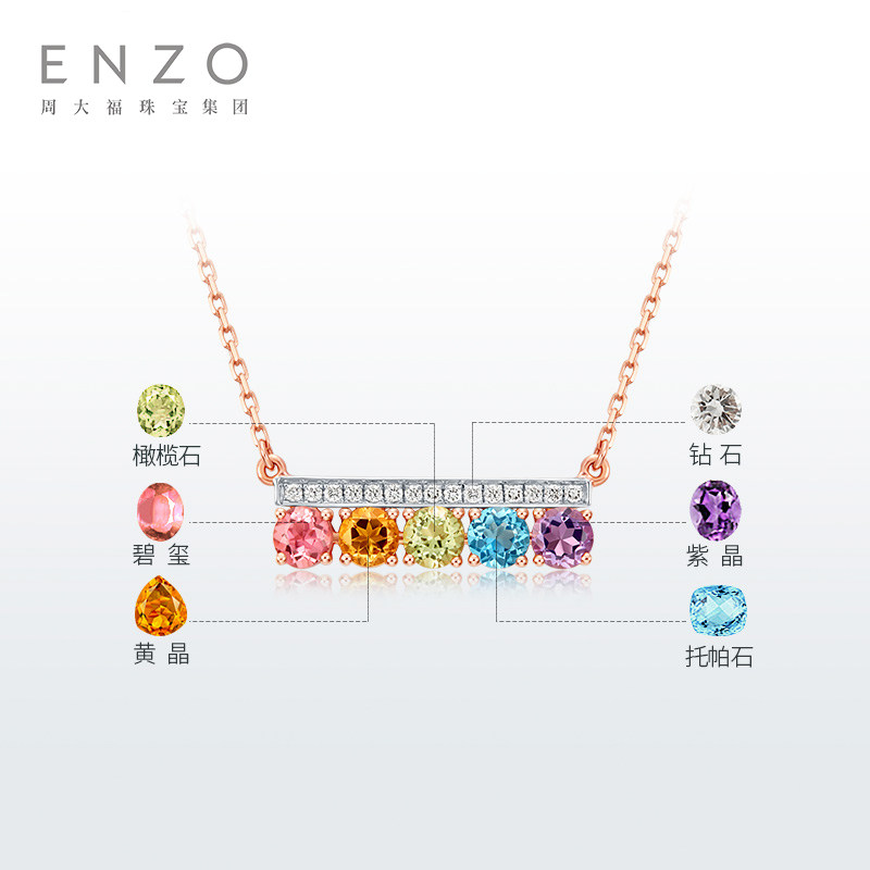 ENZO「彩虹系列」18K金多彩宝石钻石项链女EZV8014新春礼物
