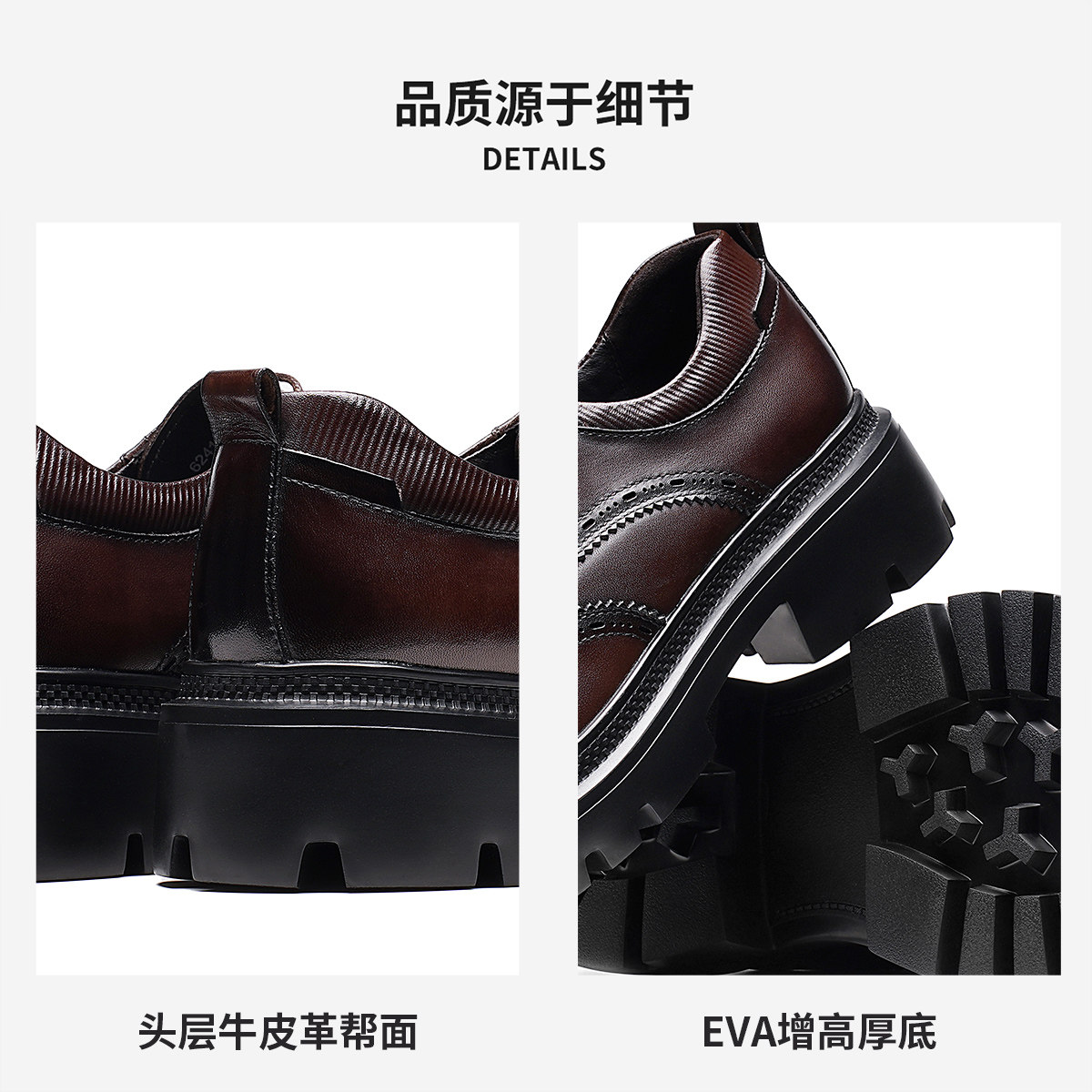 海澜之家男鞋秋冬季正装商务真皮布洛克内增高皮鞋男款加绒德比鞋