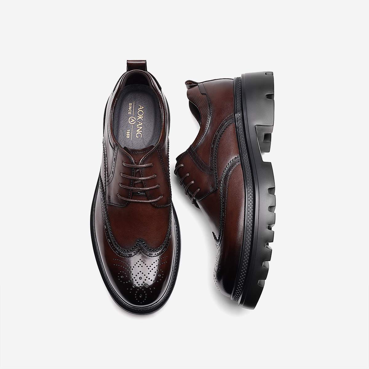【门店发货】AOKANG奥康秋季新款商务正装鞋男真皮布洛克皮鞋