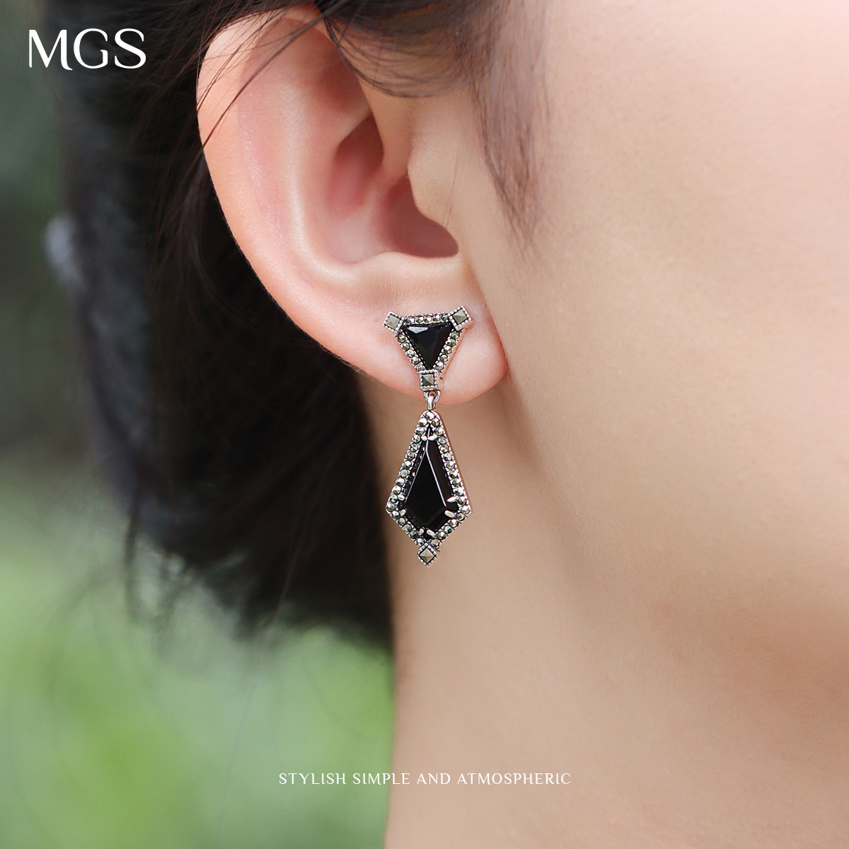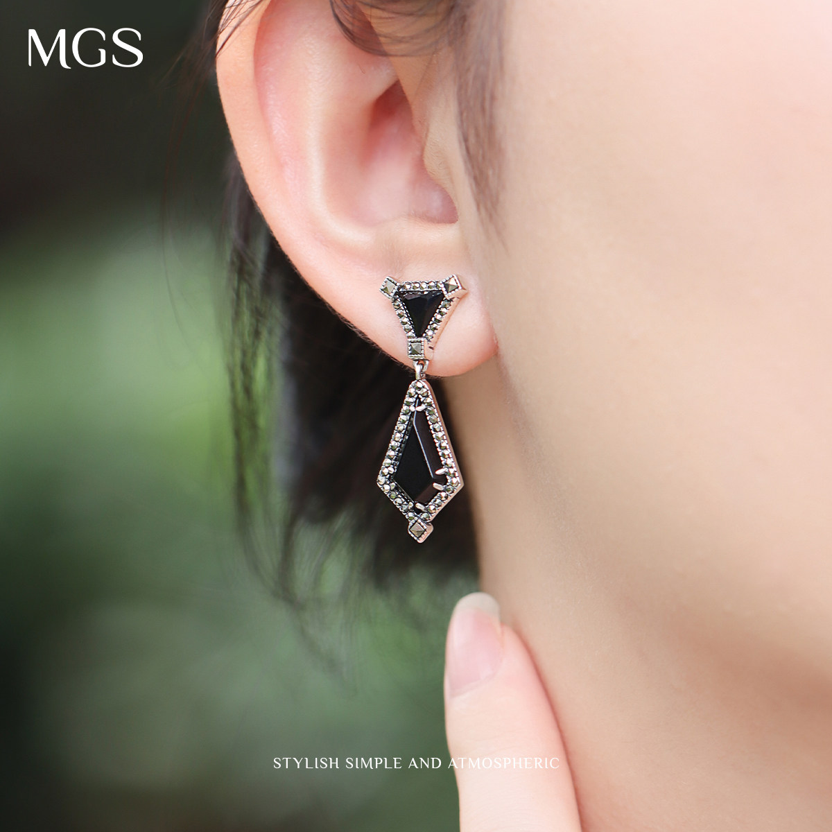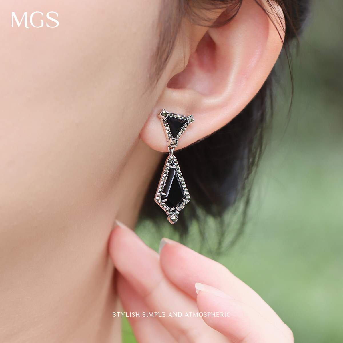 MGS/曼古银耳环925银女玛瑙小吊坠耳钉气质精致小众设计轻奢耳饰