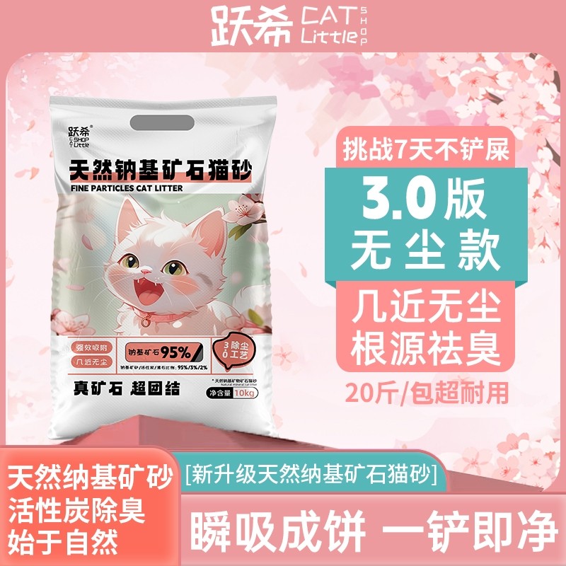 天然钠基矿石猫砂10斤低尘矿砂活性炭除臭吸水结团矿石膨润土猫砂