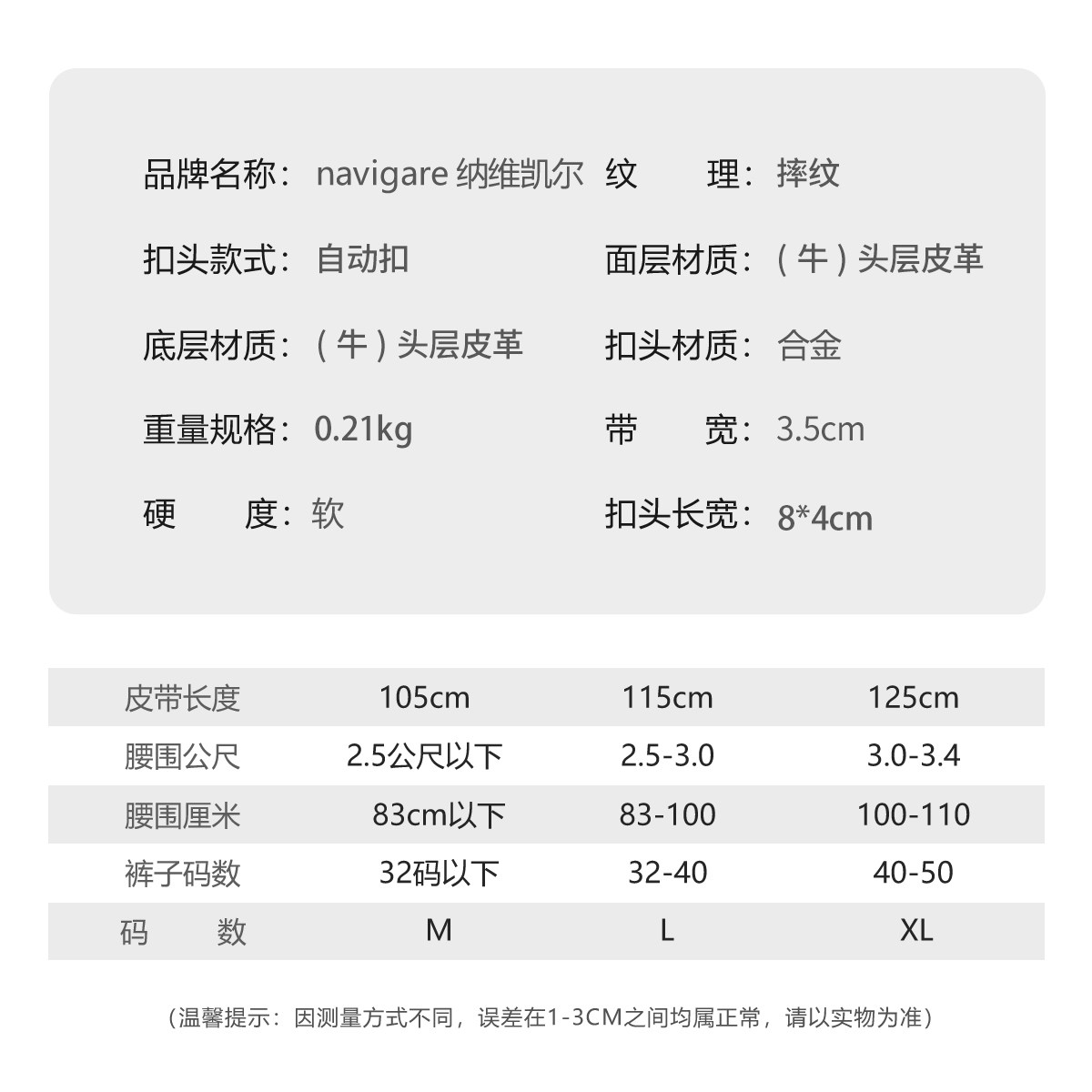 Navigare纳维凯尔意大利小帆船男真皮腰带自动扣男士头层牛皮皮带