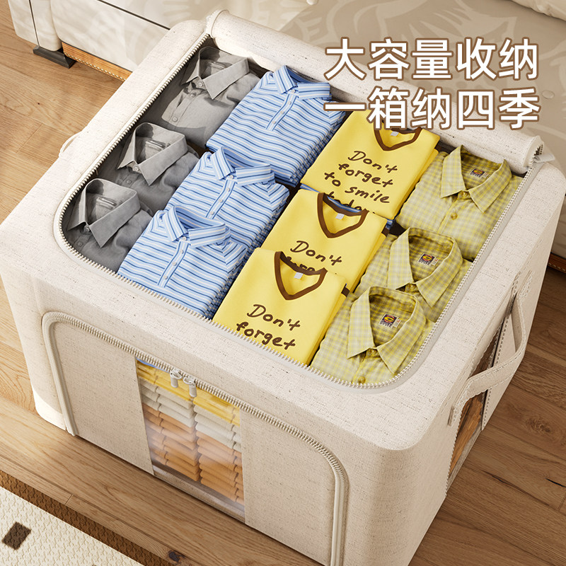 2个装衣服收纳箱棉麻布艺整理换季新神器折叠衣物整理箱被子百纳