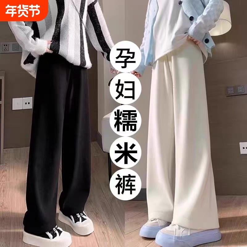 孕妇裤子春秋季外穿秋冬加绒外穿阔腿裤糯米裤休闲直筒长裤孕妇装