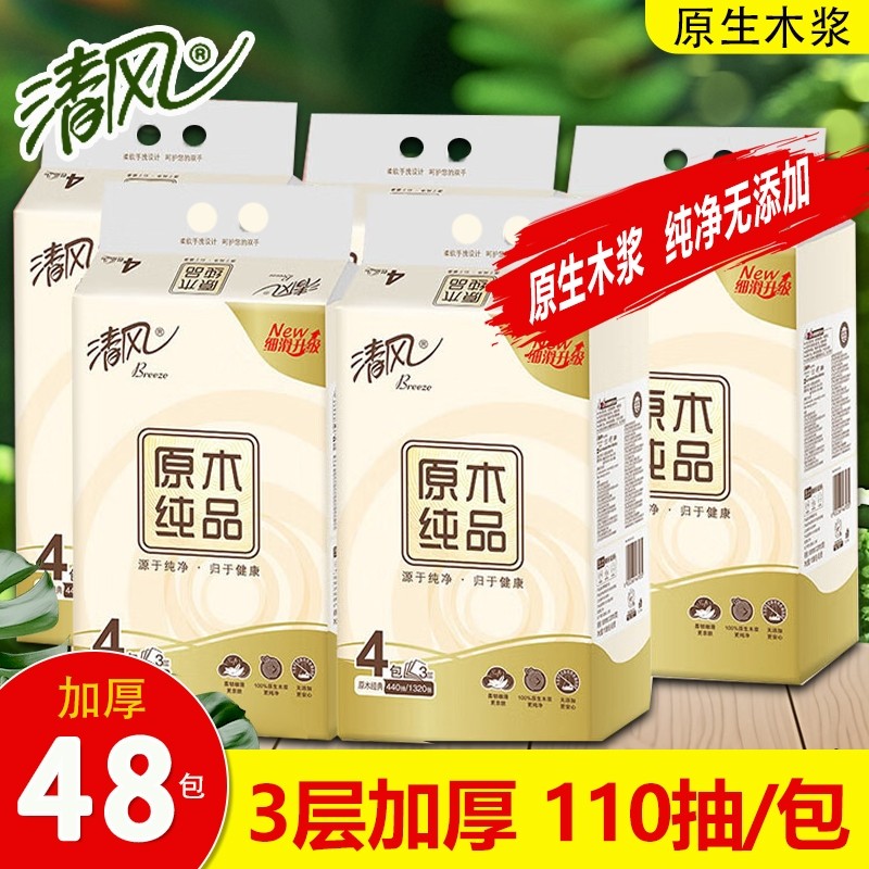 清风抽纸原木纯品3层110抽擦手卫生纸巾面巾纸餐巾纸抽家用实惠装