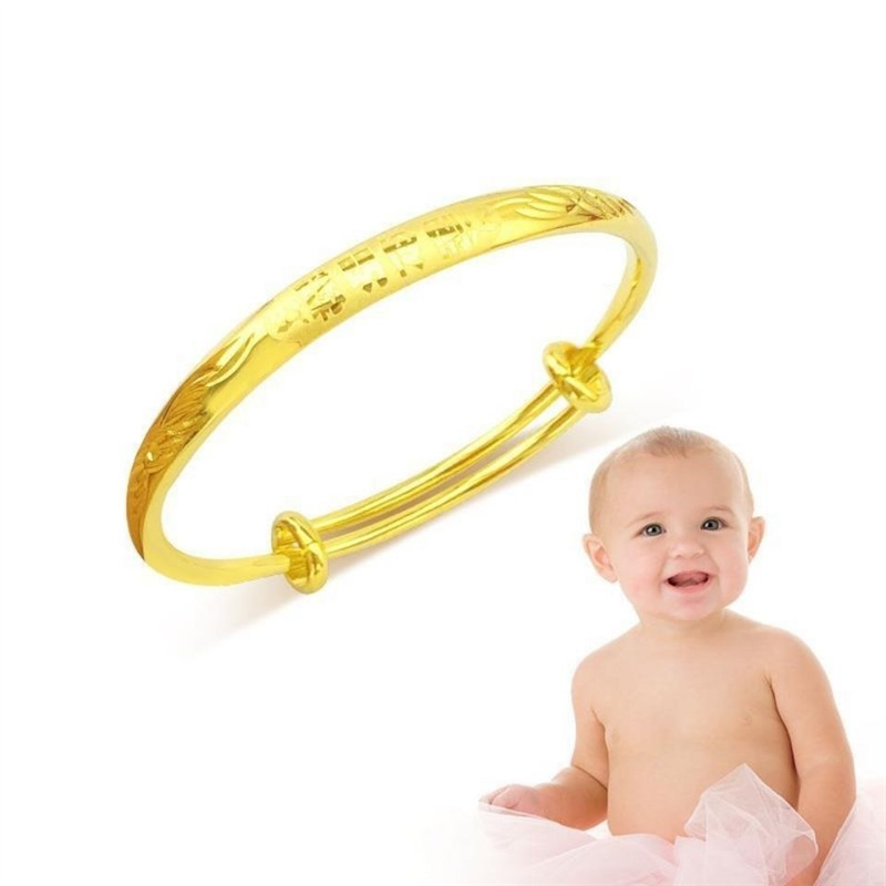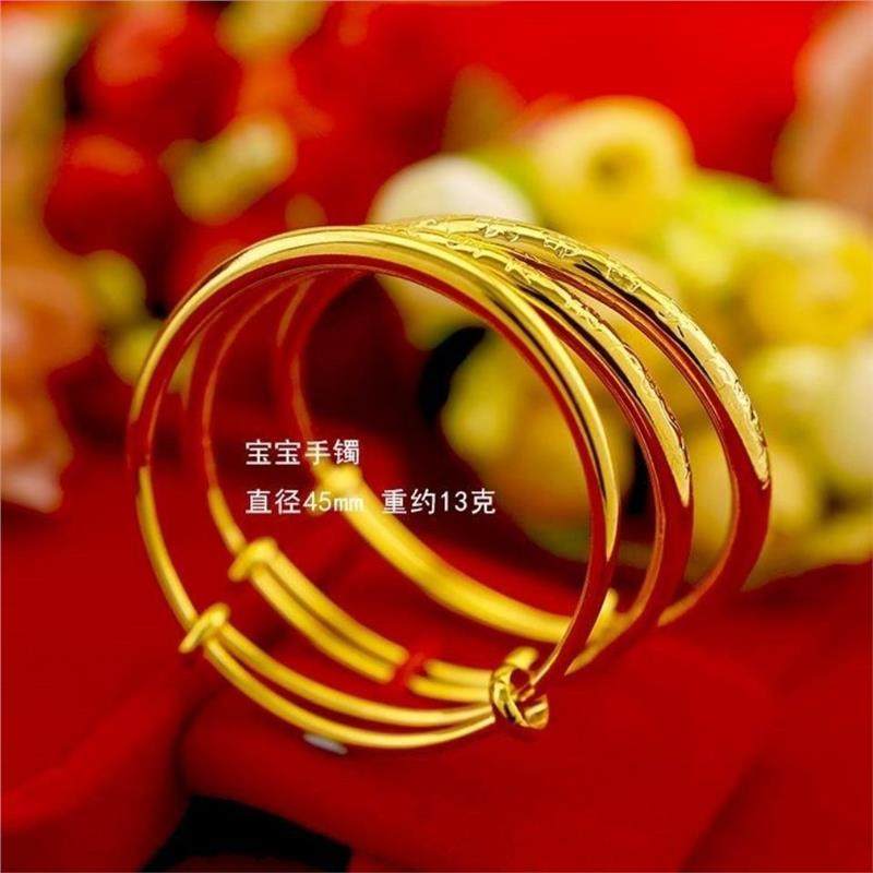 正品沙金宝宝满月小孩婴儿童镀黄金镀金手镯越南沙金手脚镯子光面