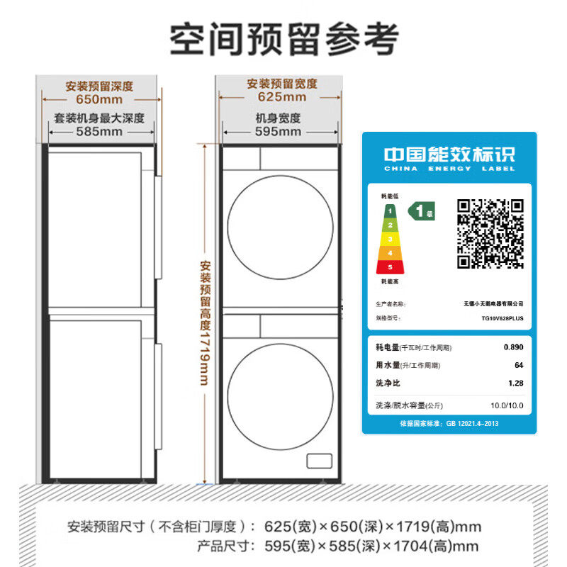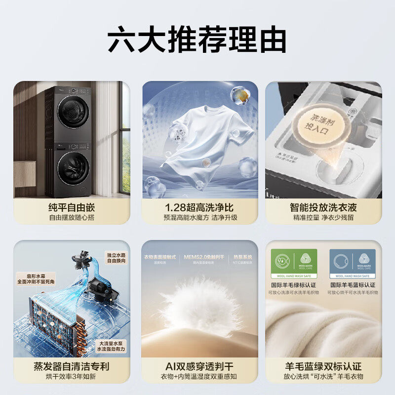 [高能水魔方]小天鹅洗烘套装洗衣机10KG热泵烘干衣机组合628P新品