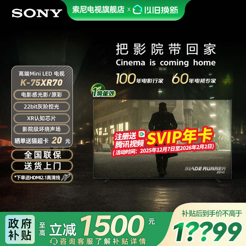 【焕新补贴20%】索尼电视7系K-75XR70 75英寸MiniLED影院平板电视