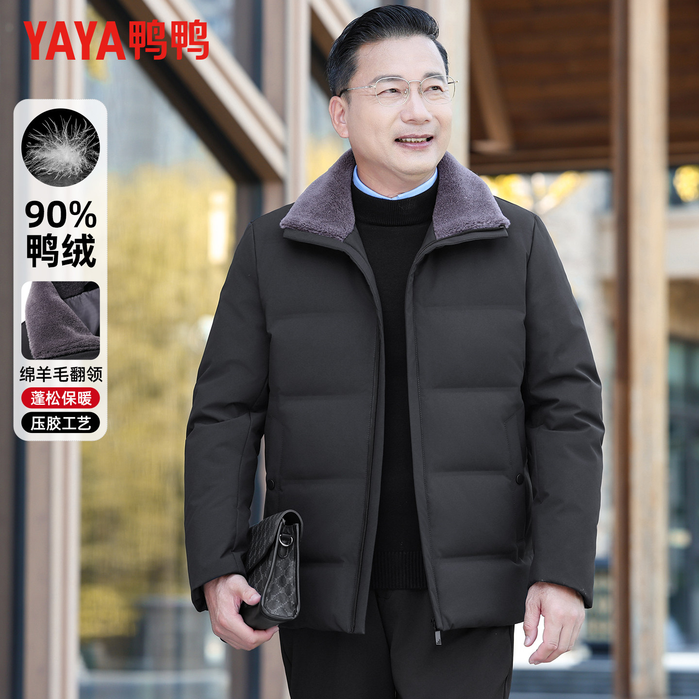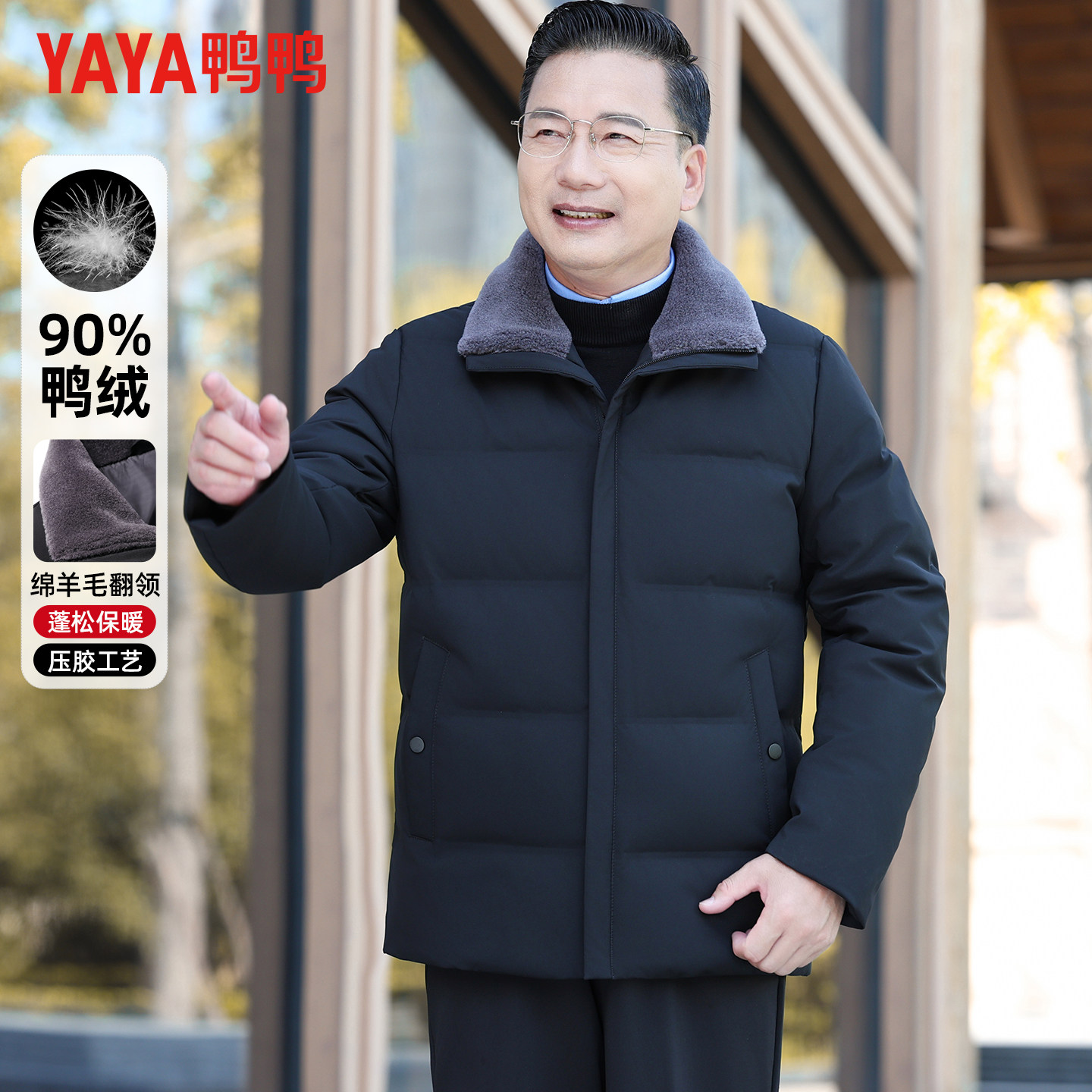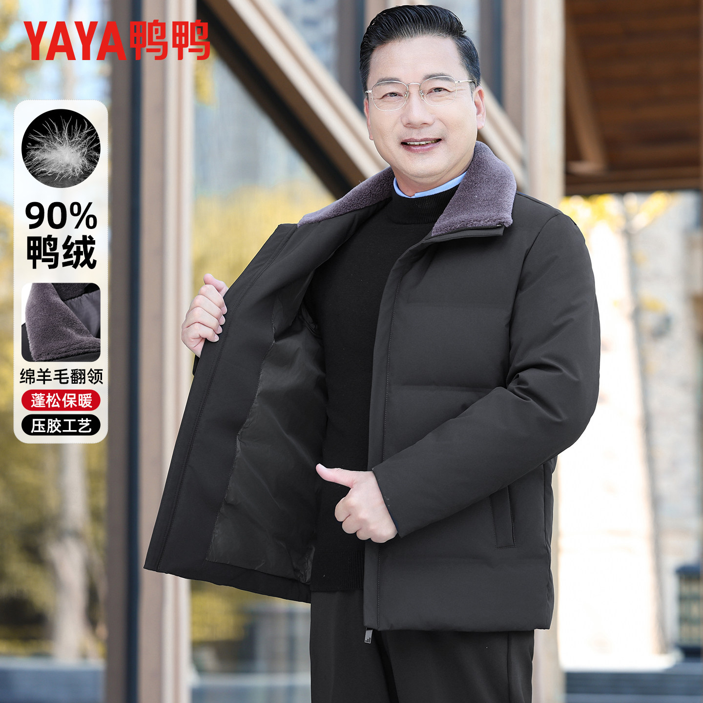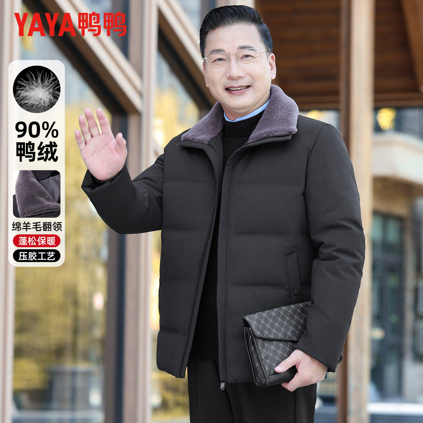 【羊羔毛领】鸭鸭冬季羽绒服男商务风中老年爸爸装加厚保暖外套男
